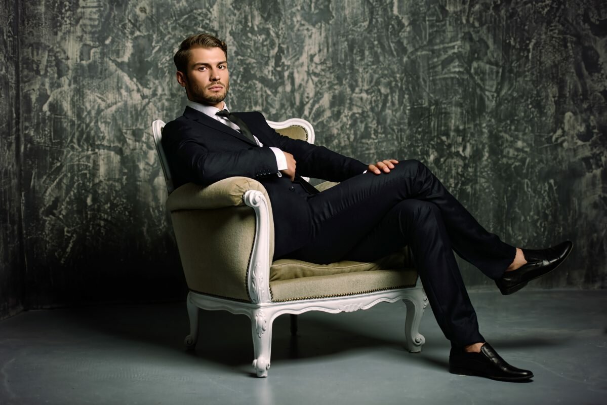 Мужчина в костюме сидит в кресле