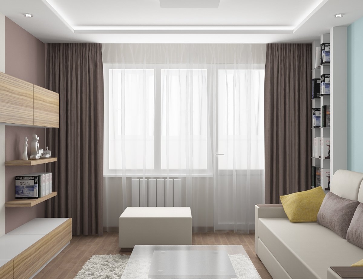 Планировка зала с балконом и окном
