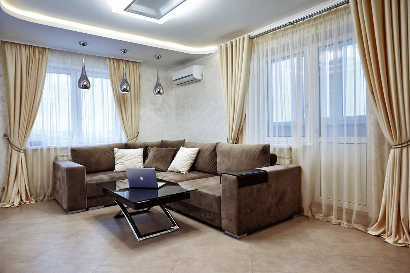 Гостиная с двумя окнами