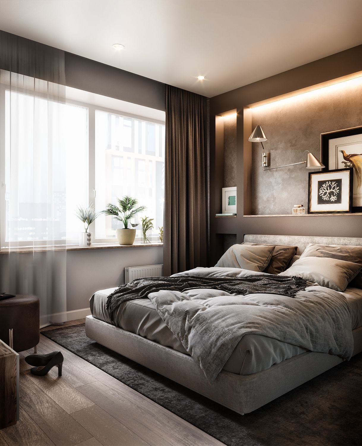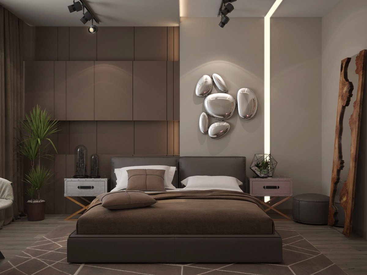 Спальня в коричневых тонах