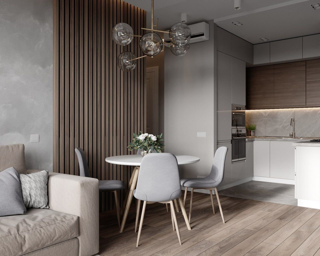 Серая кухня гостиная