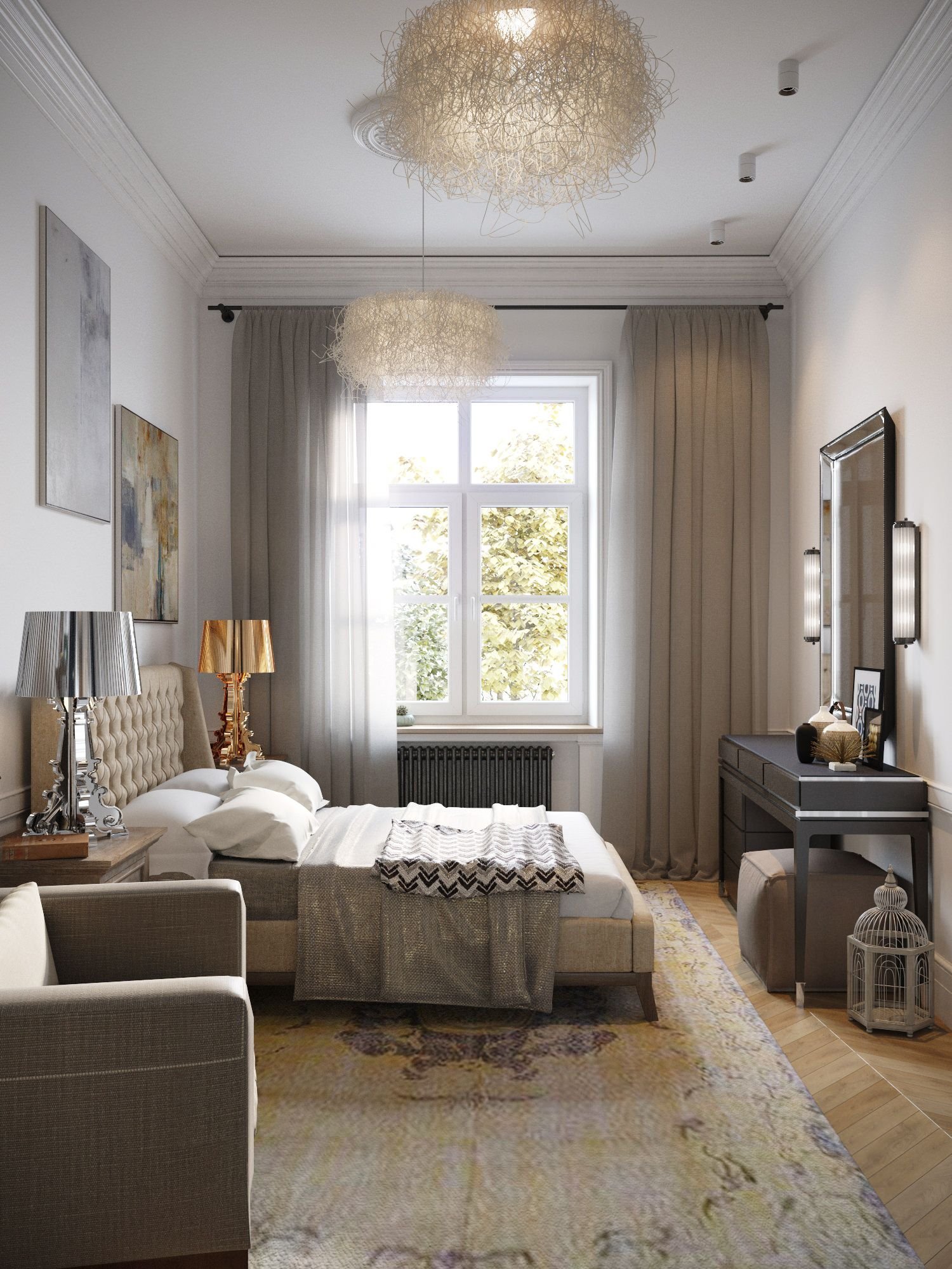 Бронза в интерьере спальни