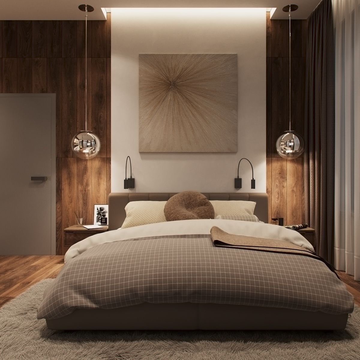 Уютная спальня в коричневых тонах