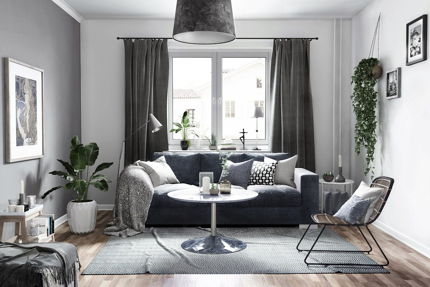 Гостиная в скандинавском стиле темная