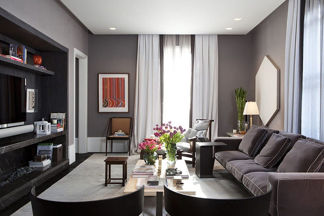 Гостиная в серо коричневых тонах