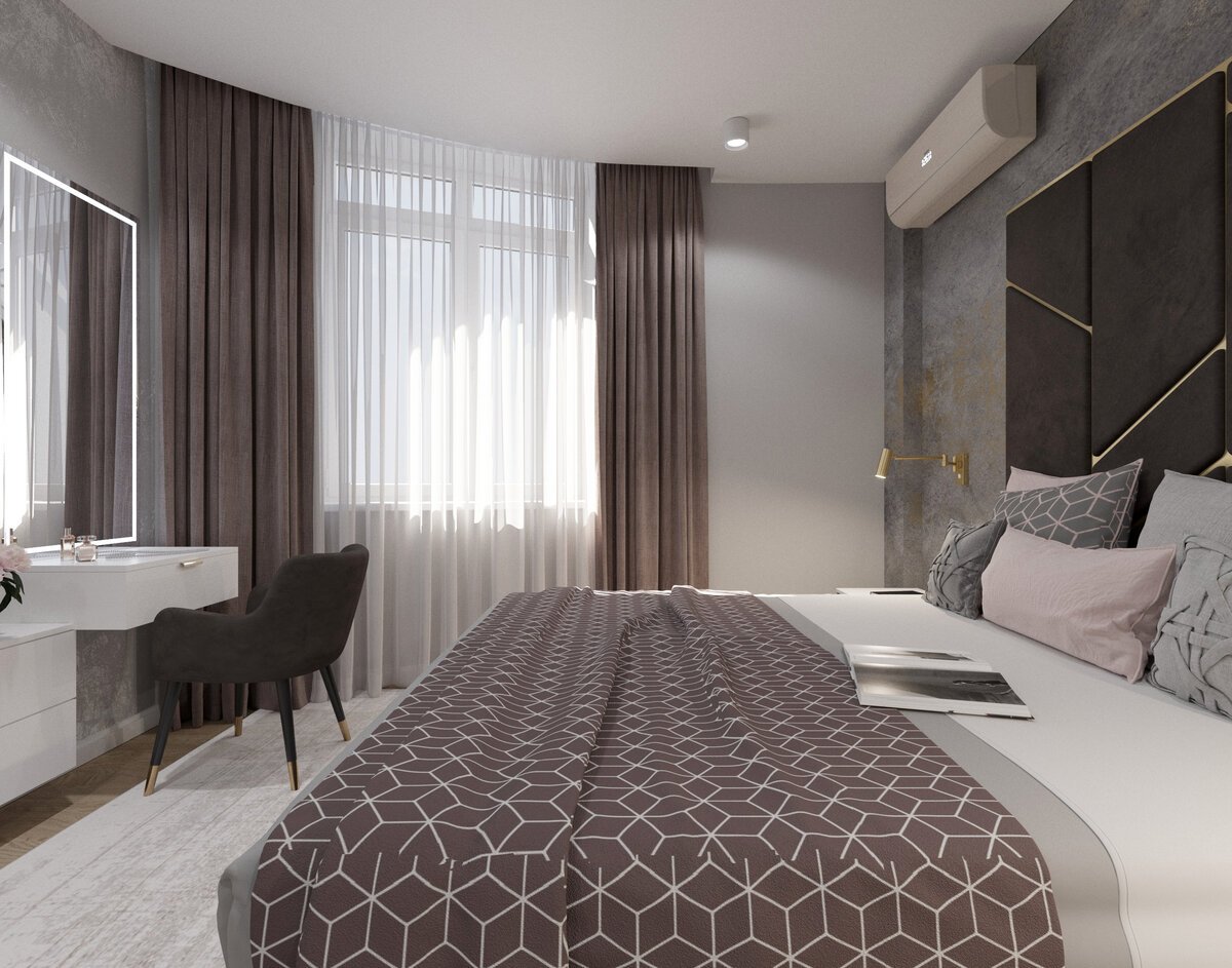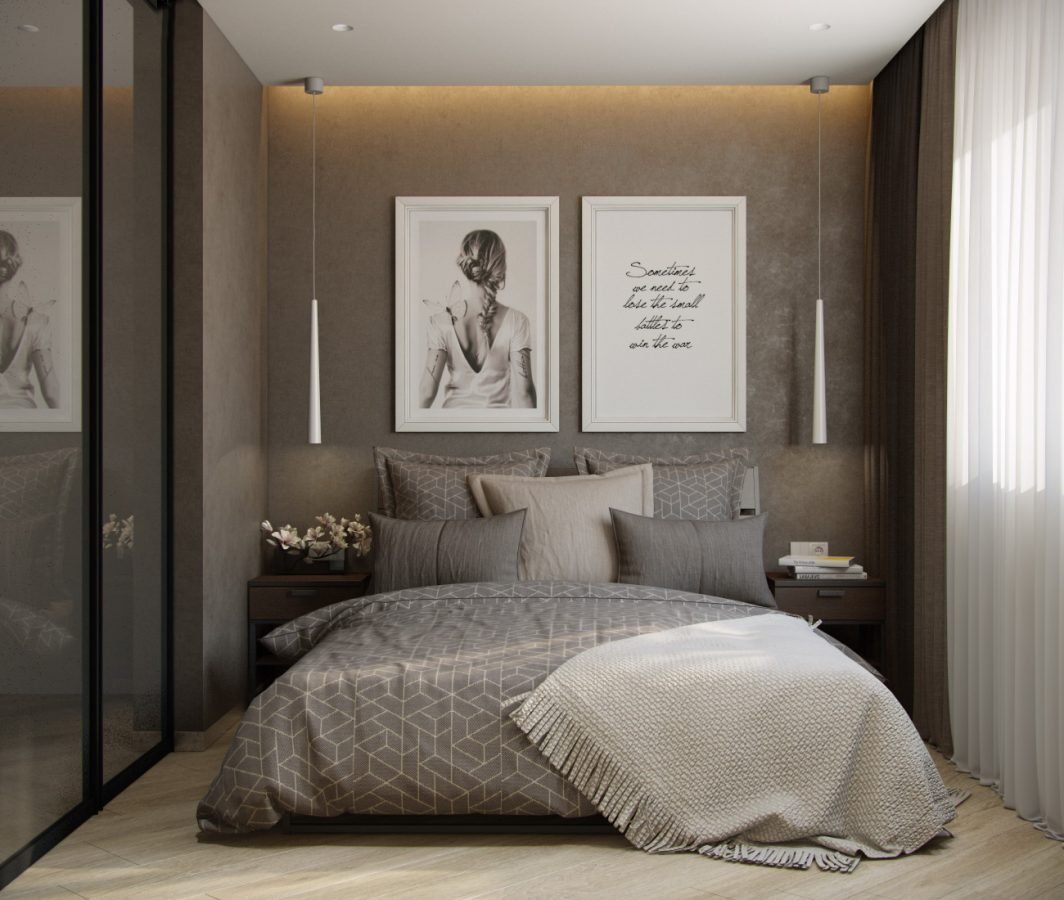 Спальня в серо коричневых тонах