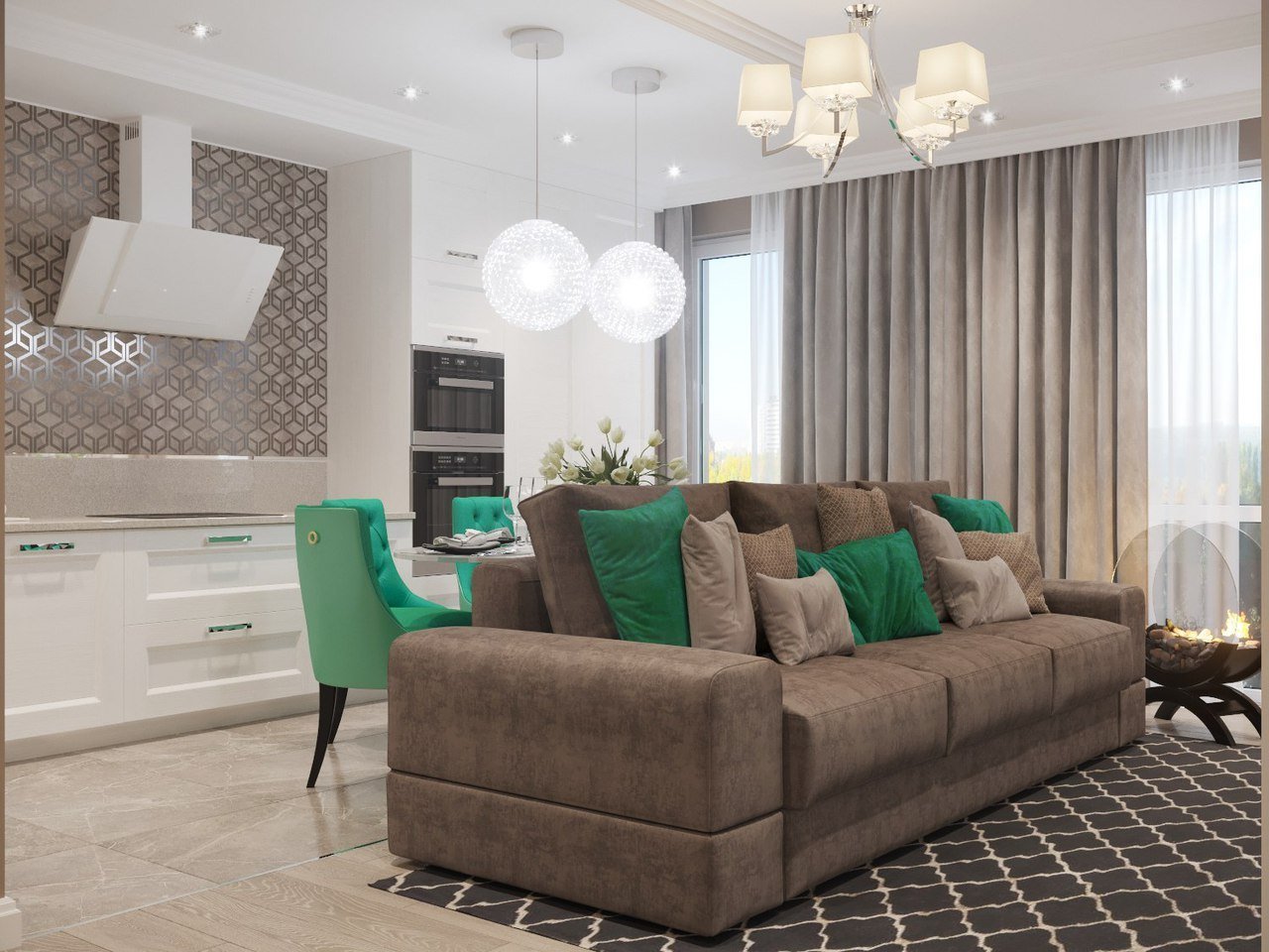 Стильная кухня гостиная