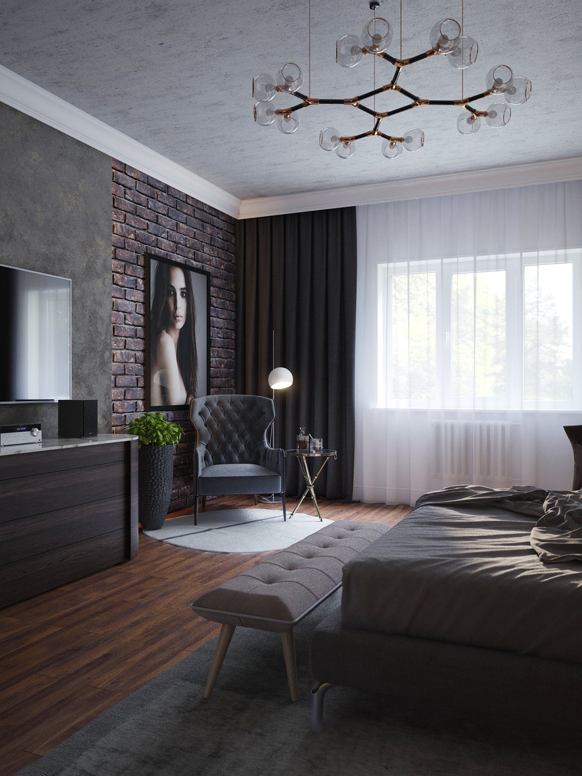 Брутальный интерьер спальни