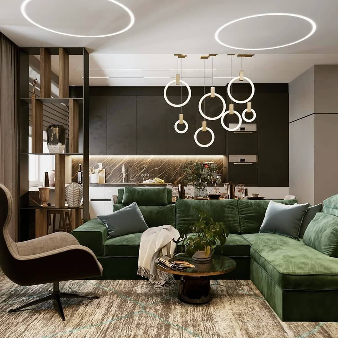 Гостиная с зелеными акцентами