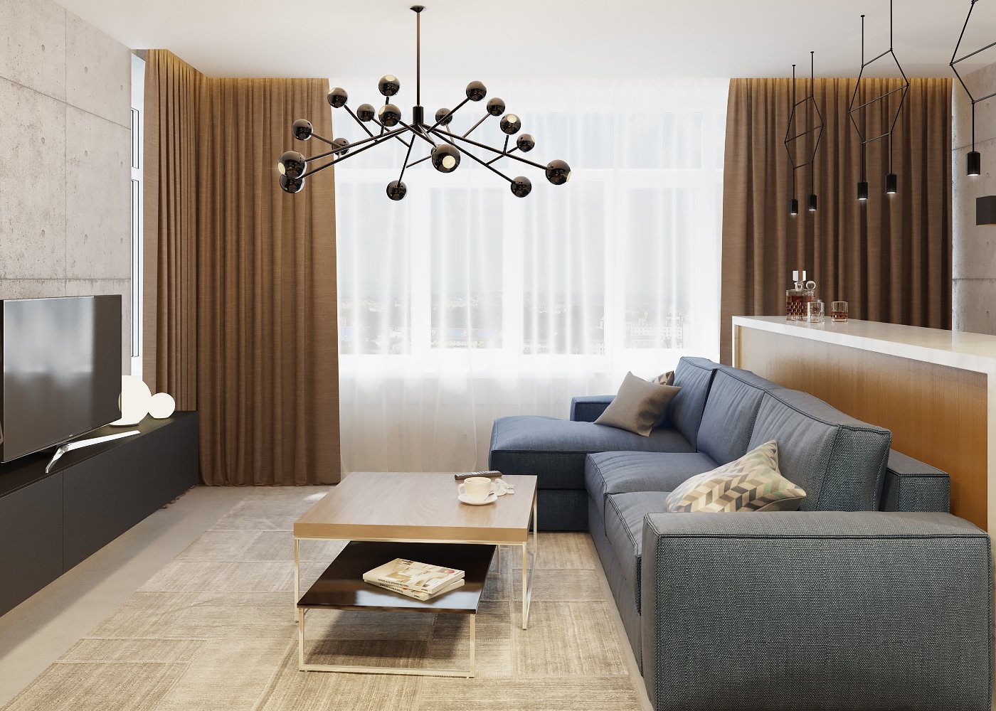 Интерьер в коричнево серых тонах