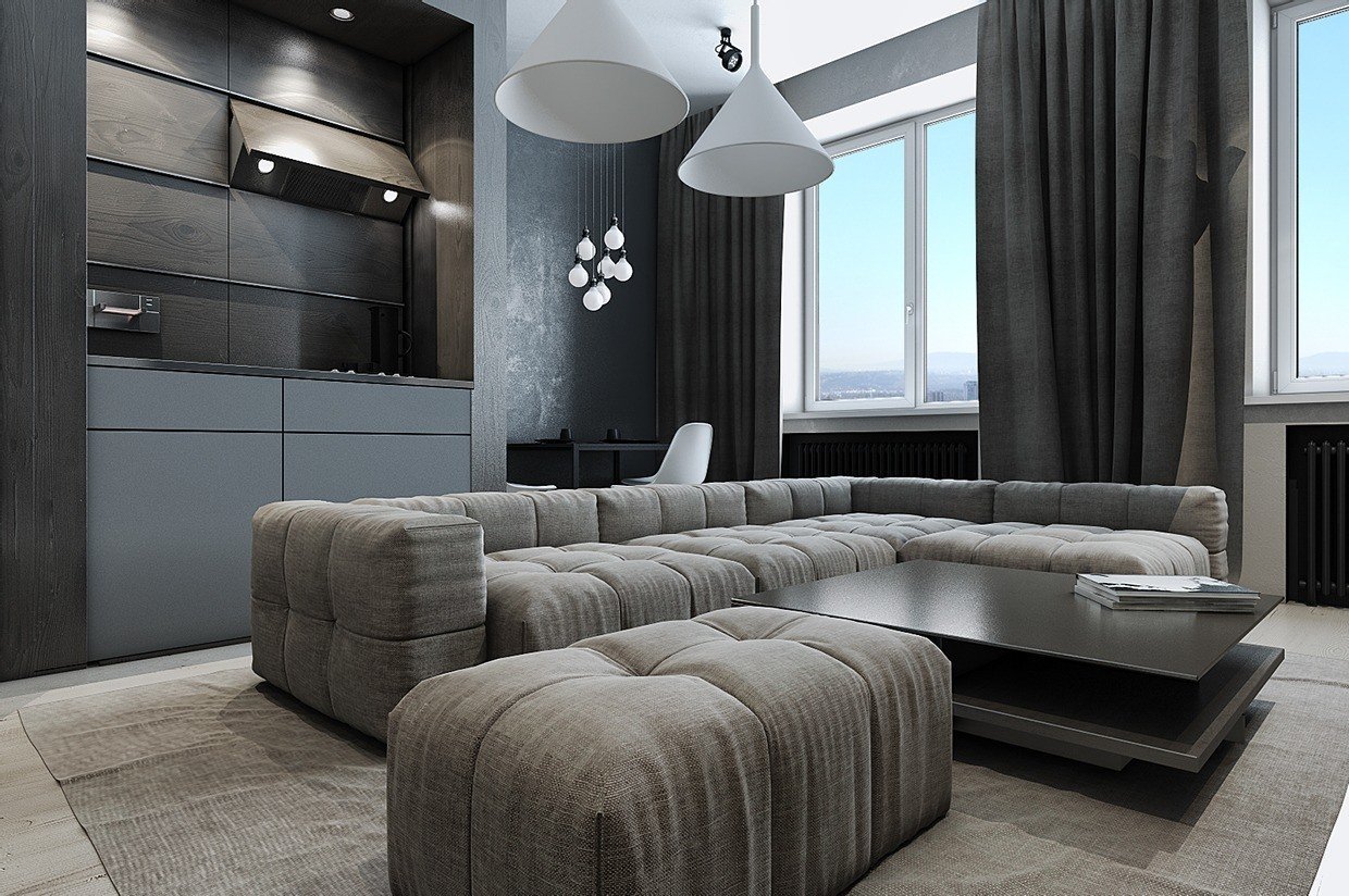 Кухни гостиные в серых тонах