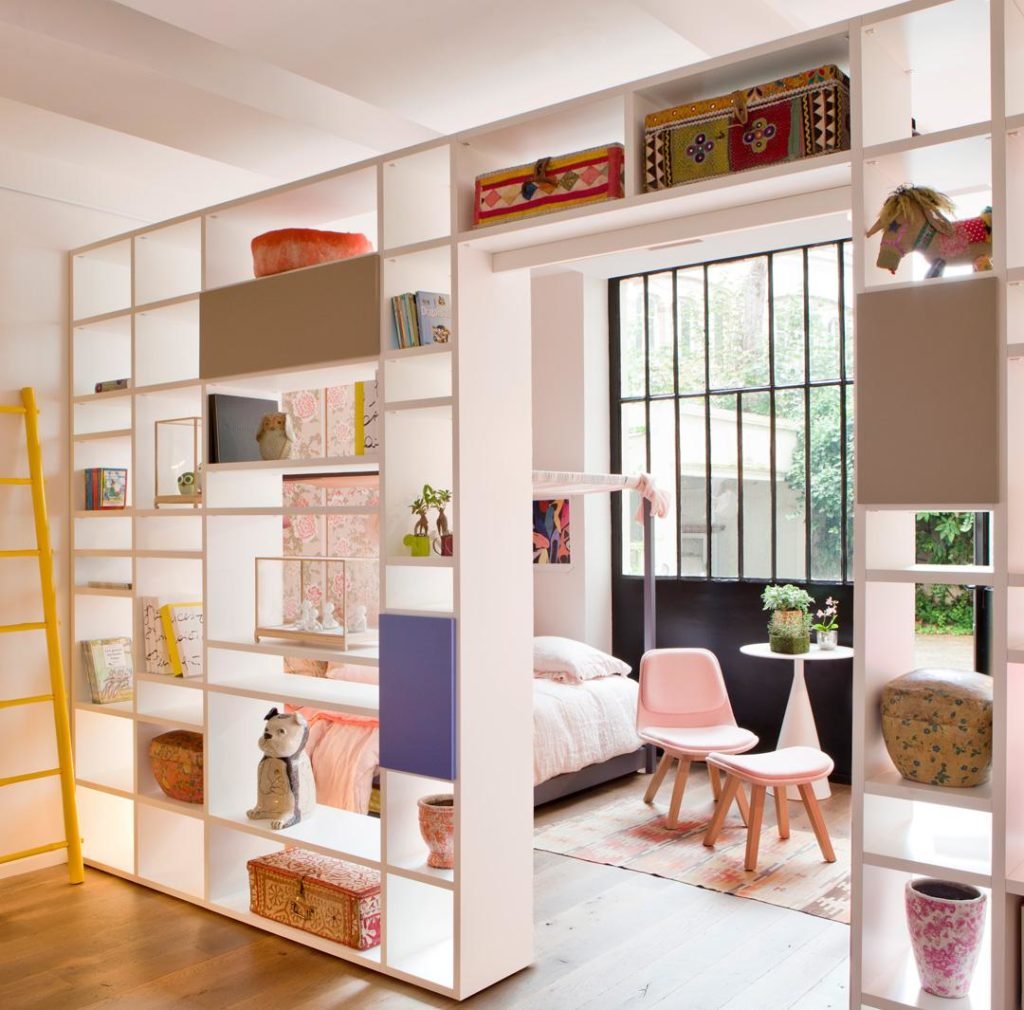 Комната для девушки со стеллажом
