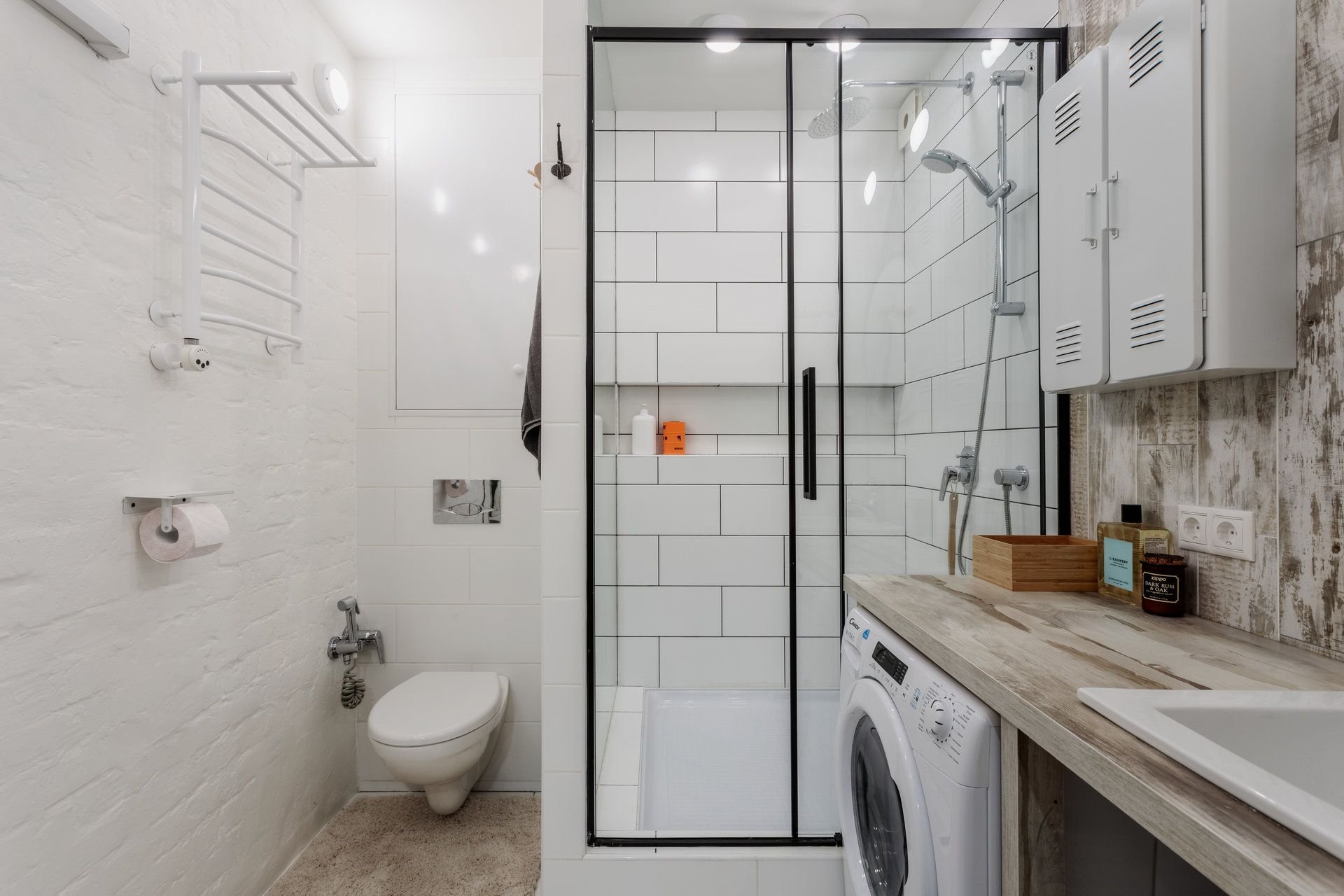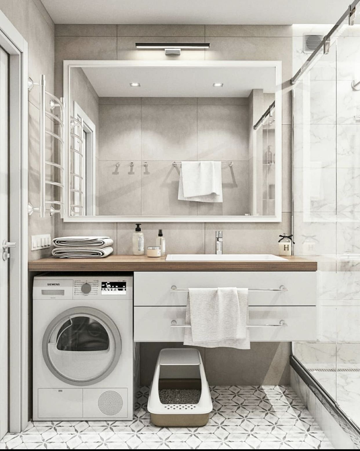 Ванная с душевой кабиной и стиральной