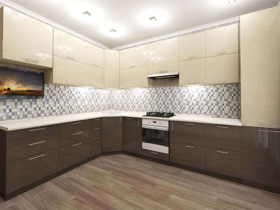 Кухонный гарнитур белый верх коричневый низ