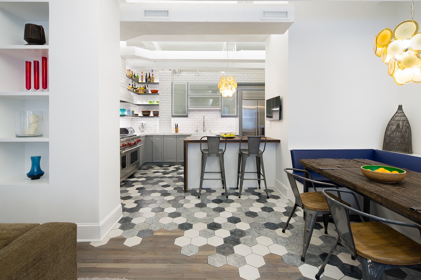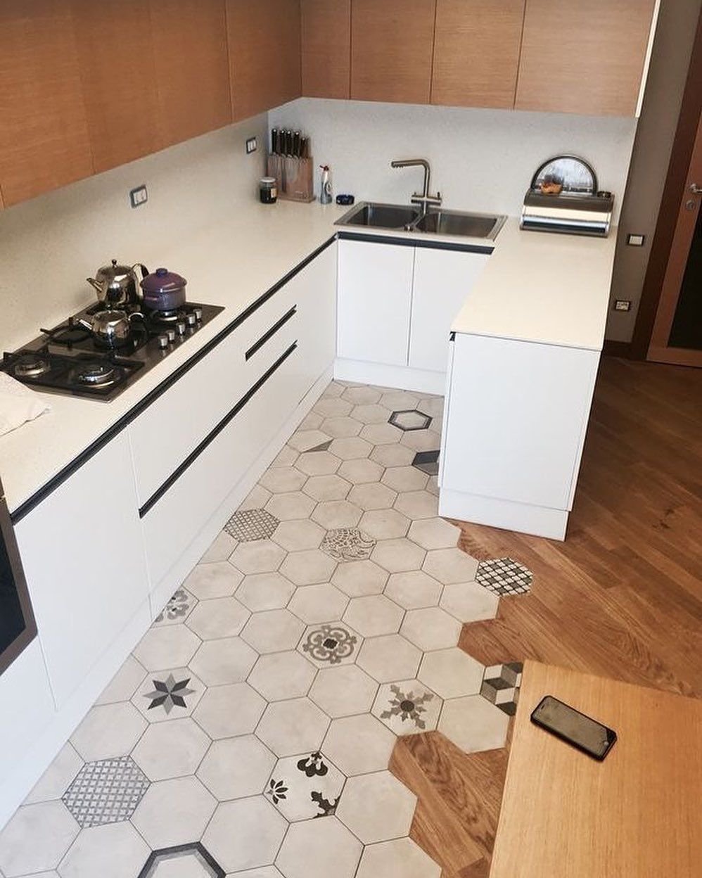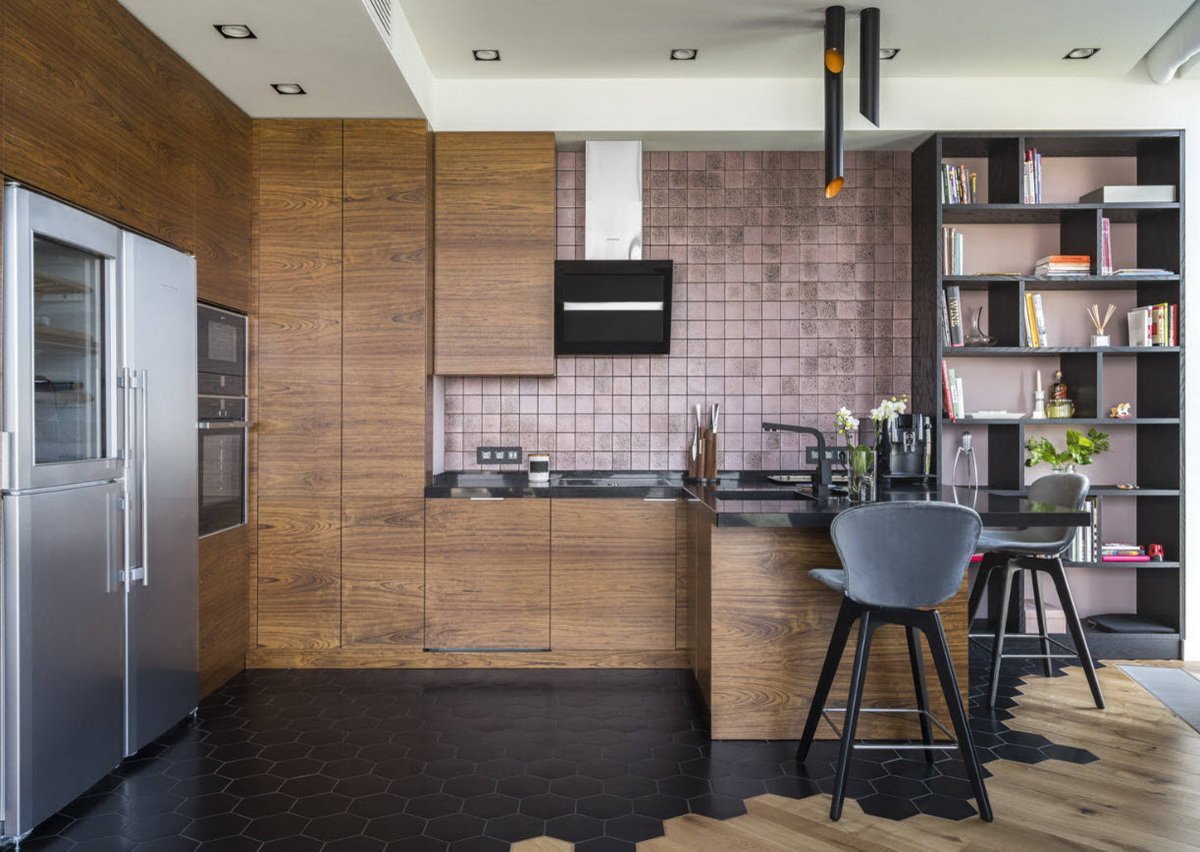 Шестигранная плитка на кухне