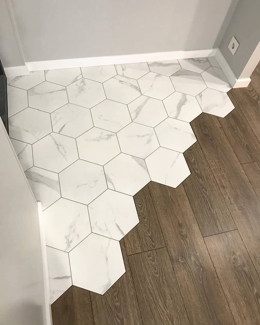Плитка Гексагон и ламинат в прихожей