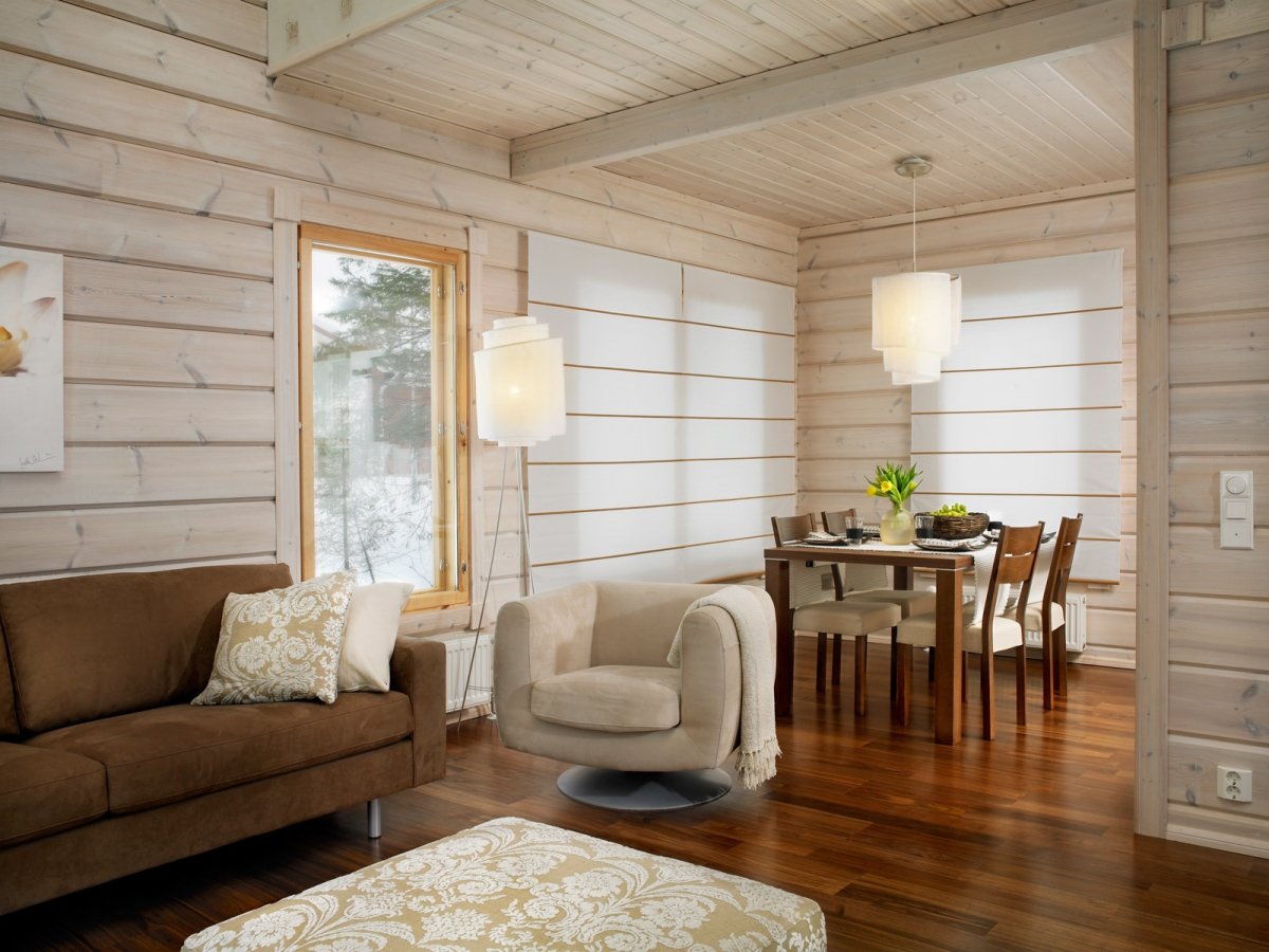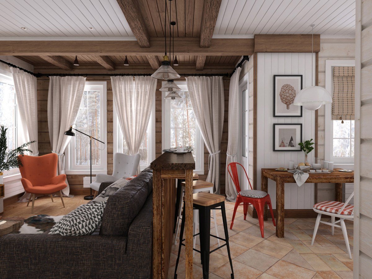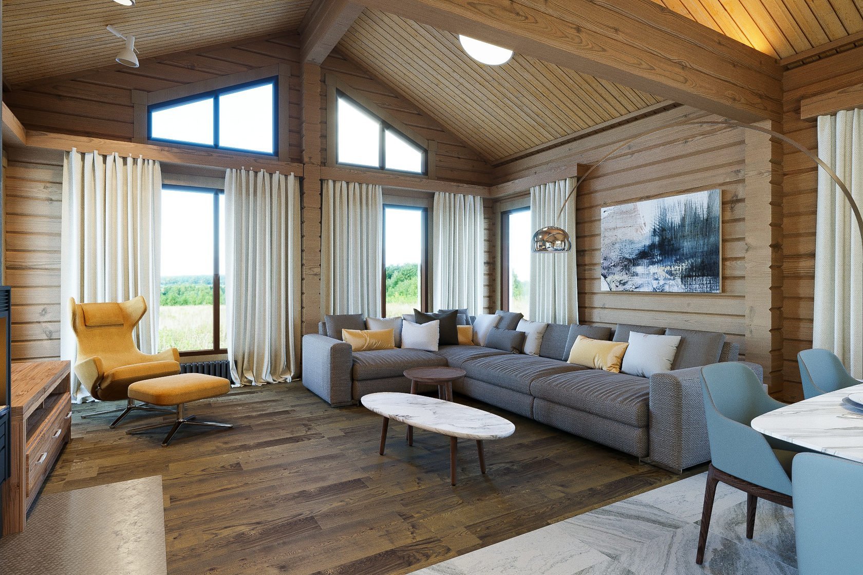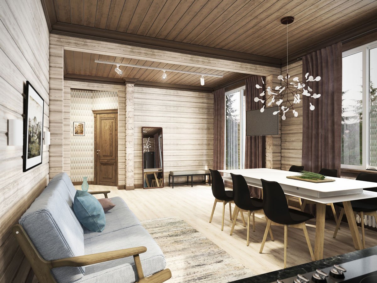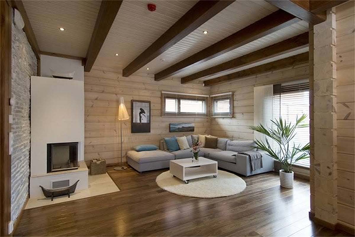 Интерьеры в домах из клееного бруса в скандинавском стиле