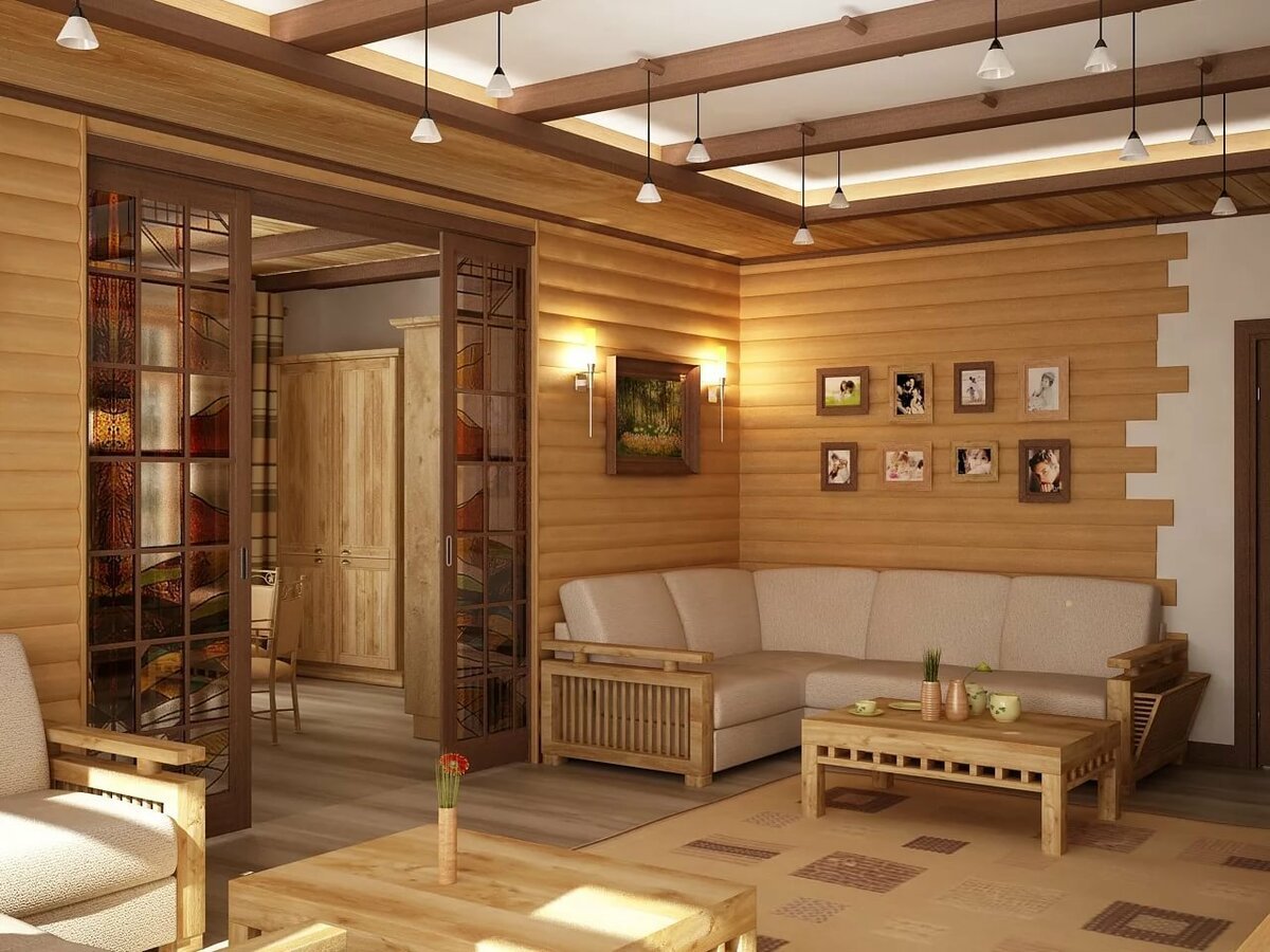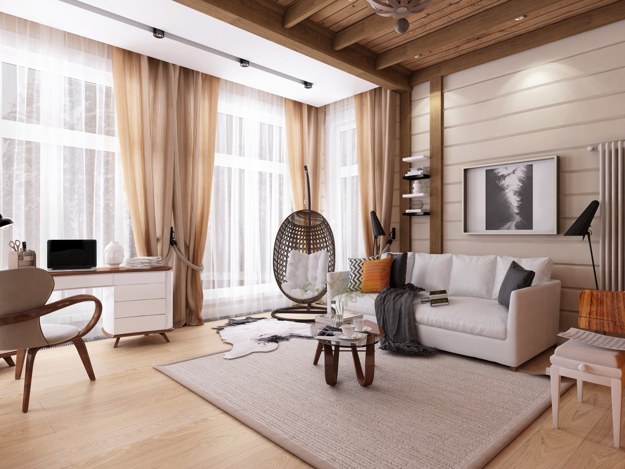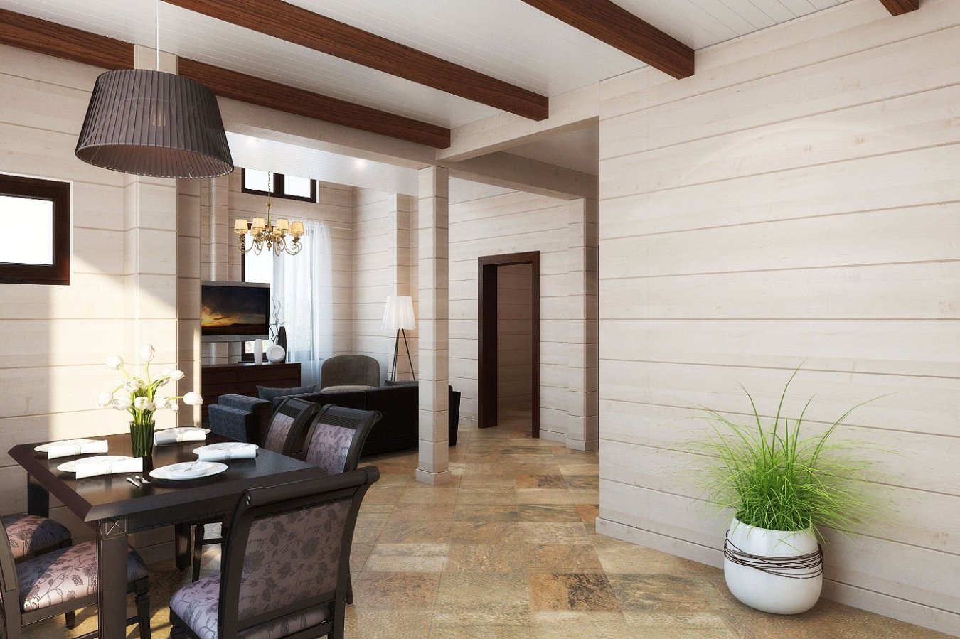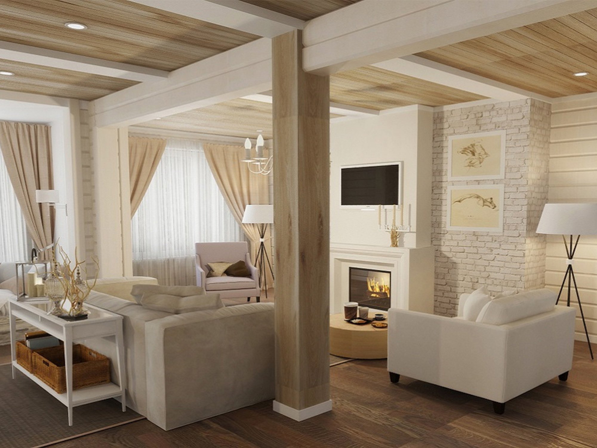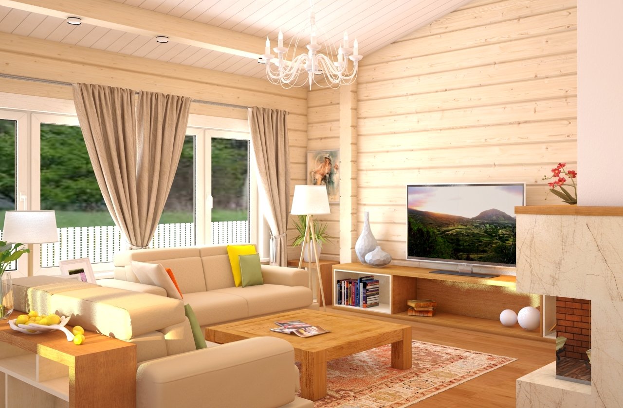 Интерьеры в домах из клееного бруса в скандинавском стиле