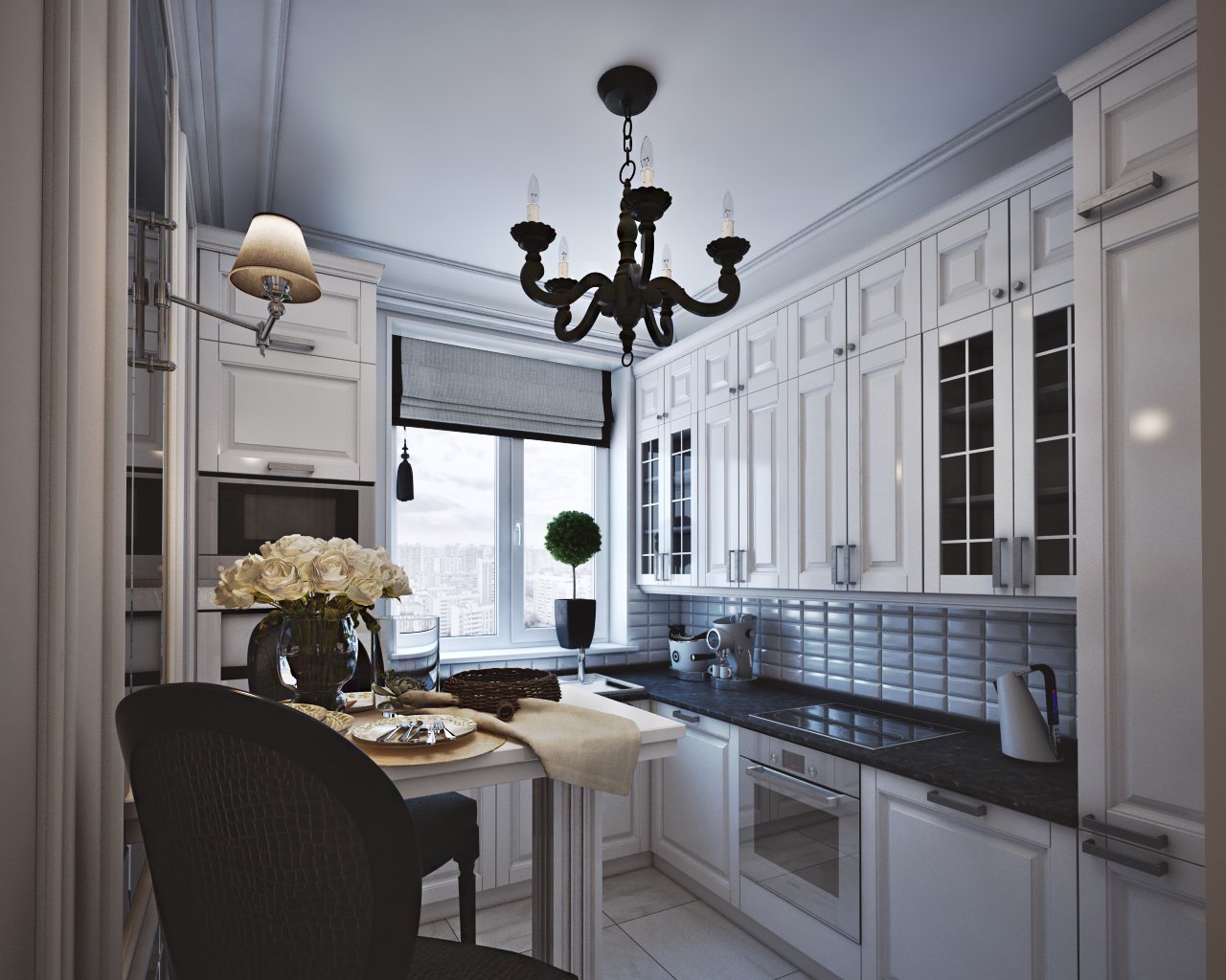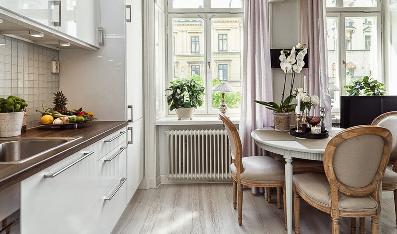 Интерьер кухни с французским балконом