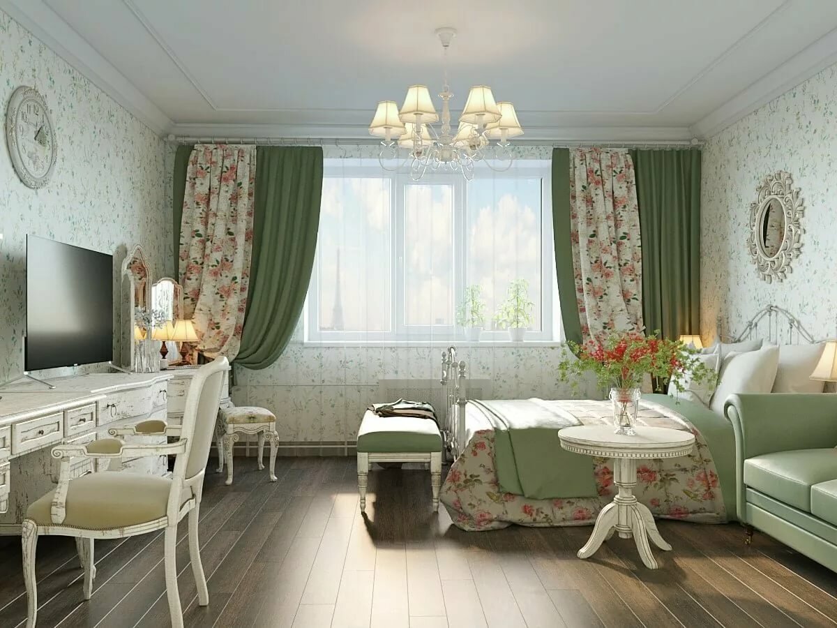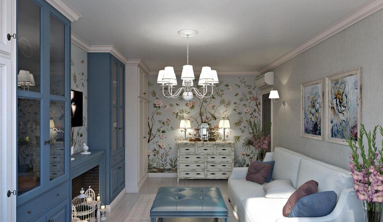 Гостиная в стиле Прованс в квартире 20 кв.м