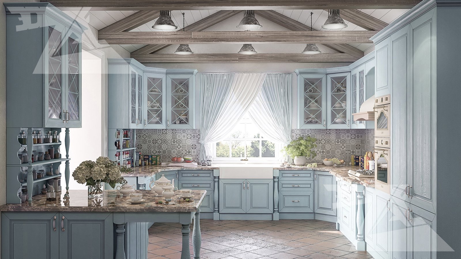 Кухня Кантри Прованс Неоклассика голубая
