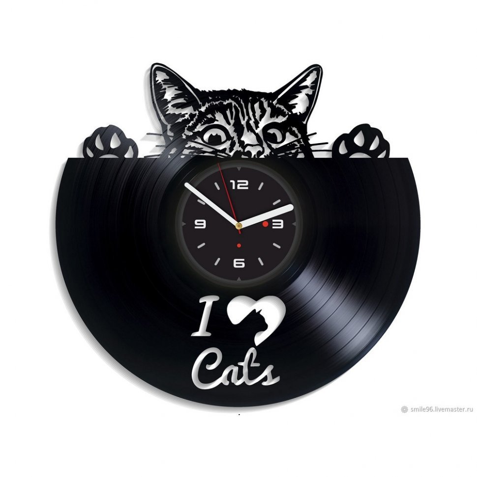 Часы из винила кошки