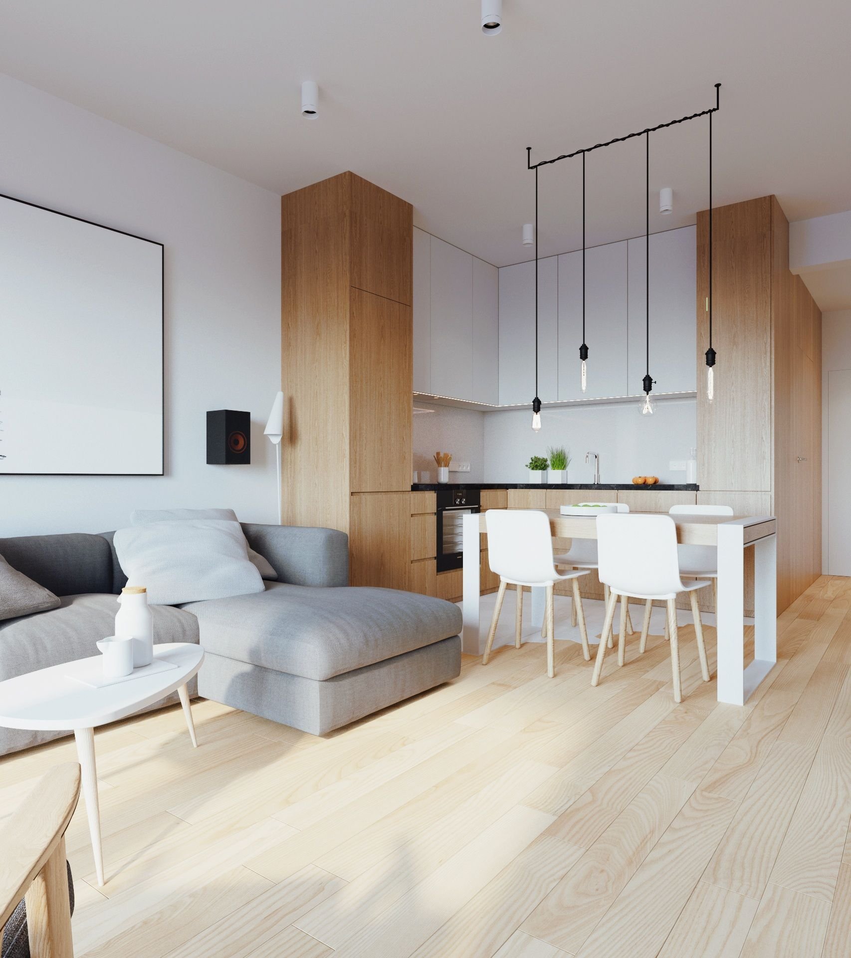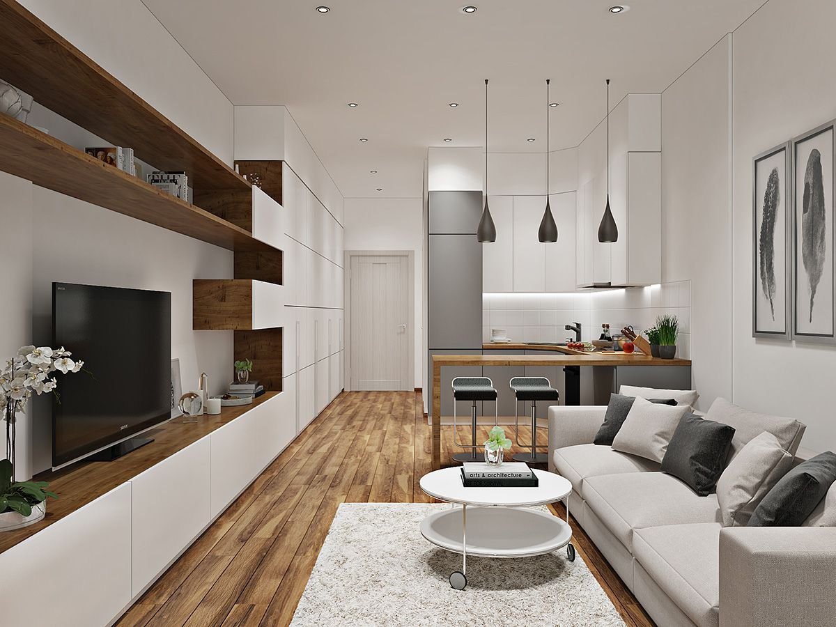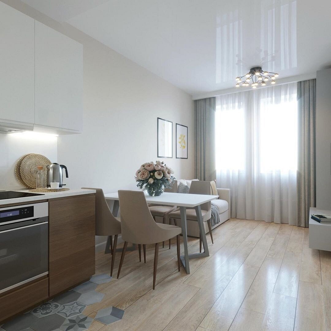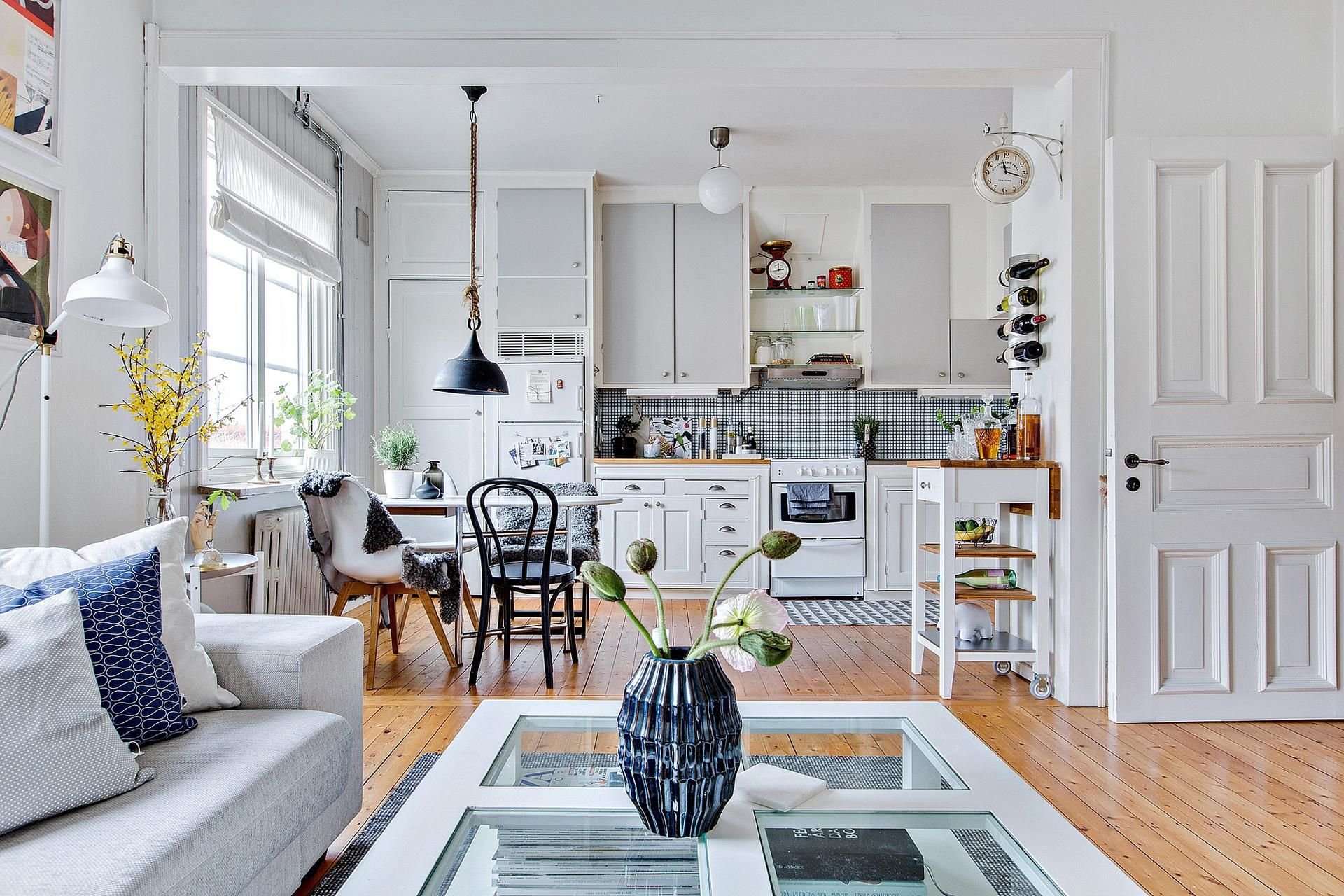 Скандинавский стиль кухня гостиная совмещенная