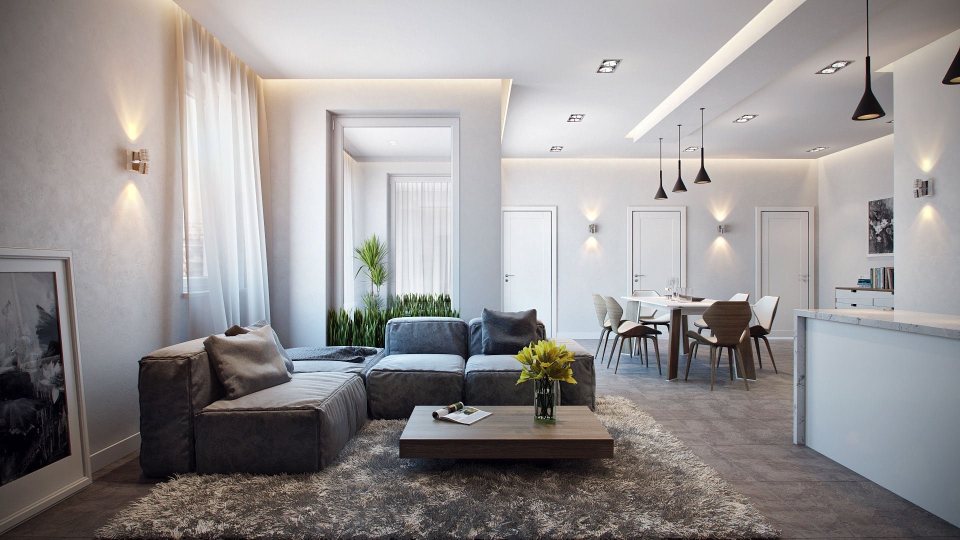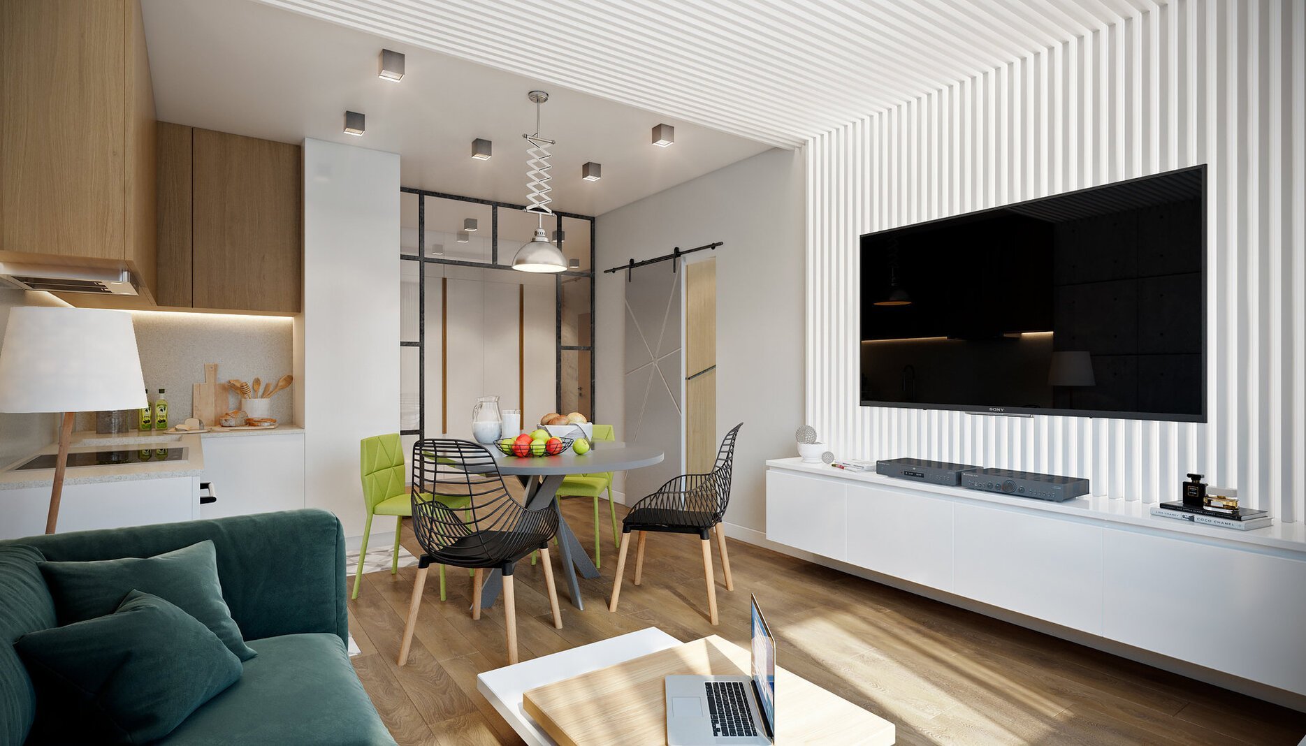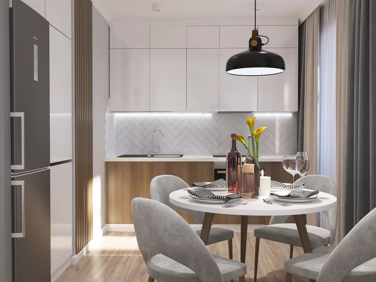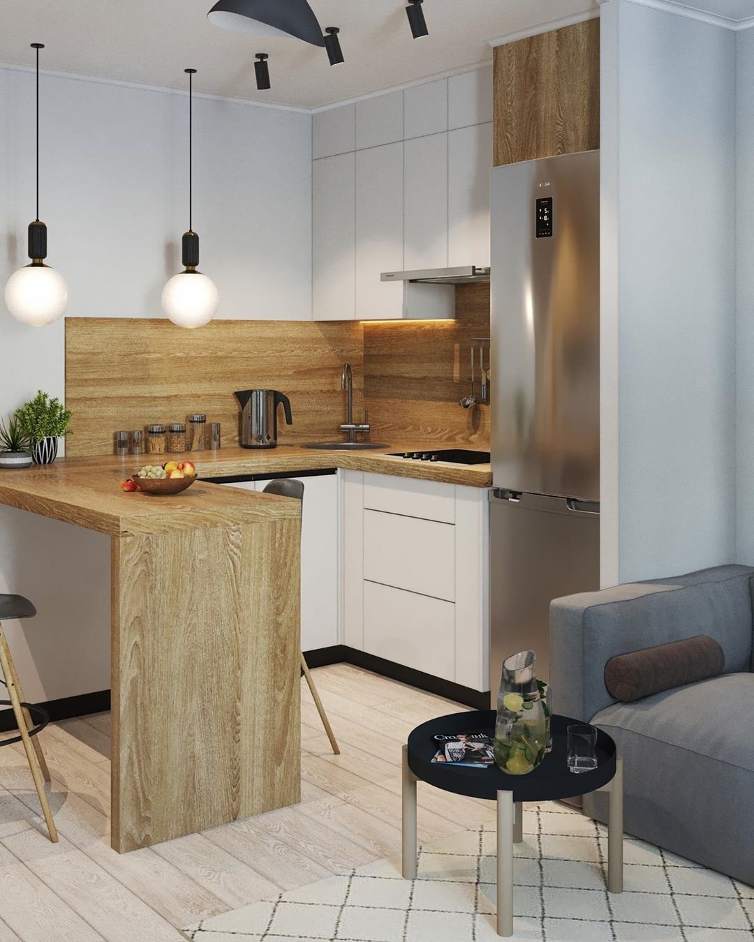 Скандинавский стиль кухня гостиная совмещенная
