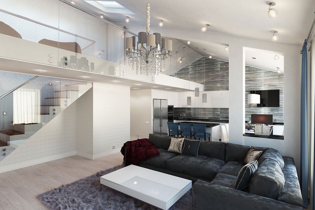 Интерьер с высокими потолками