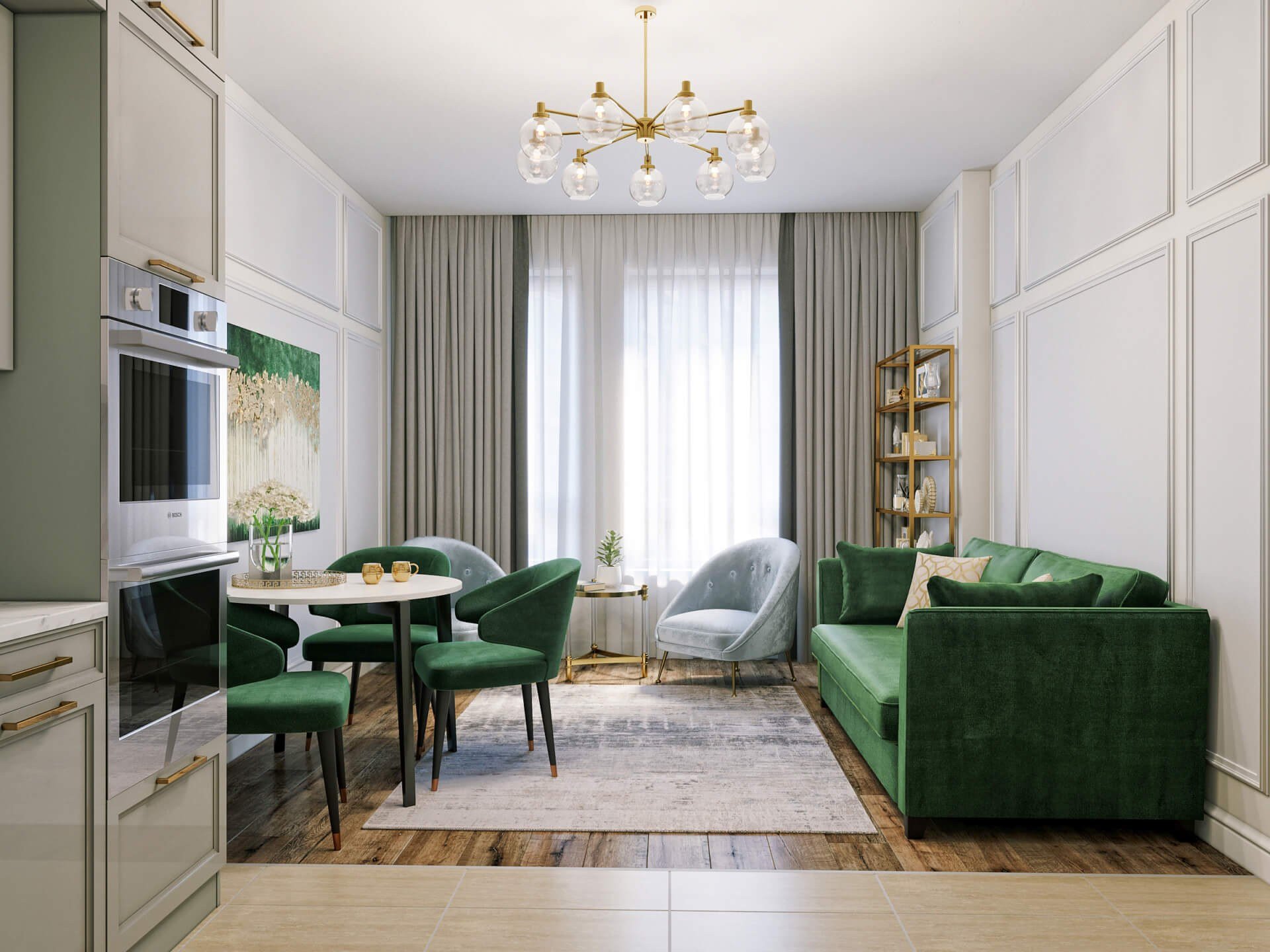 Кухня гостиная 30 кв м Неоклассика