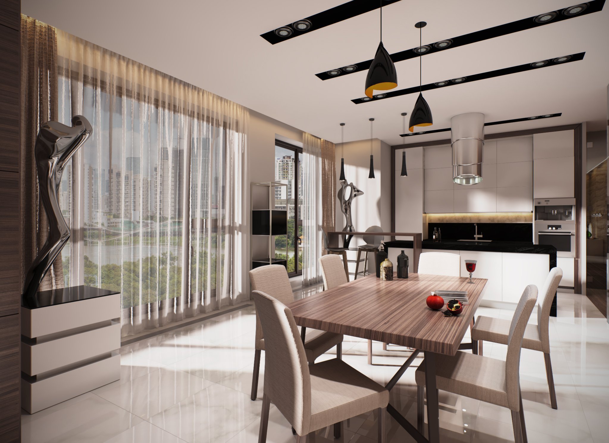 Гостиная столовая с панорамными окнами