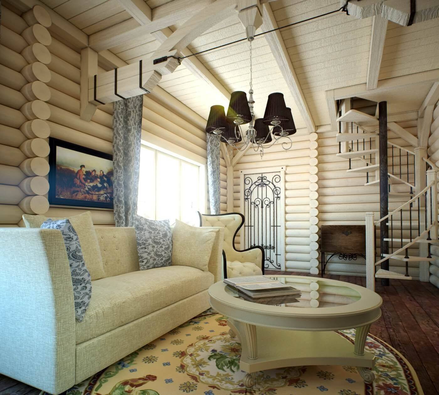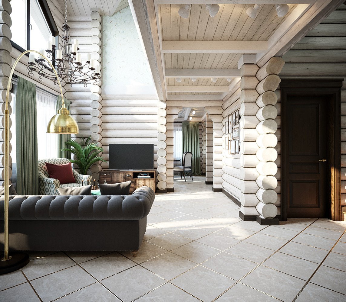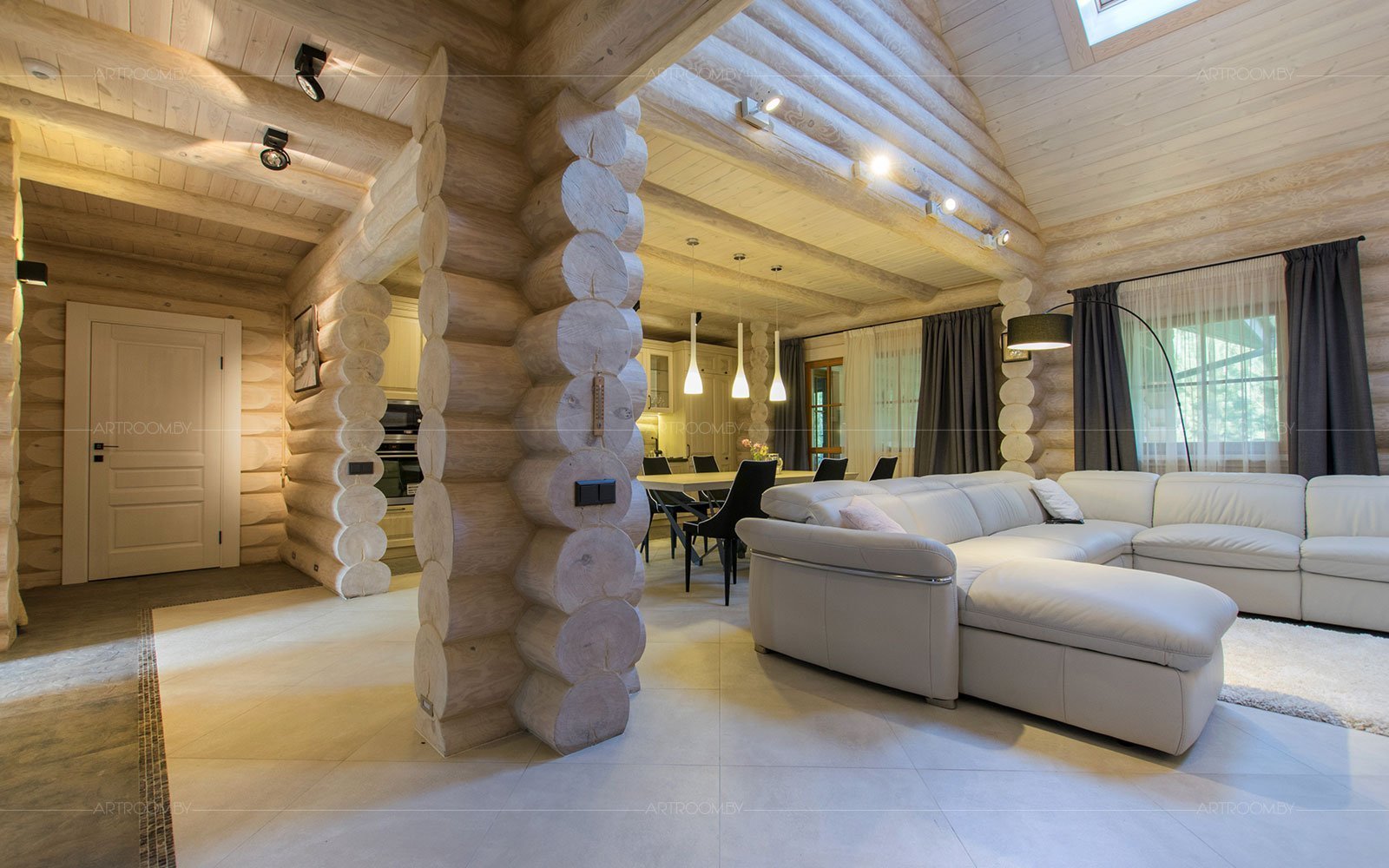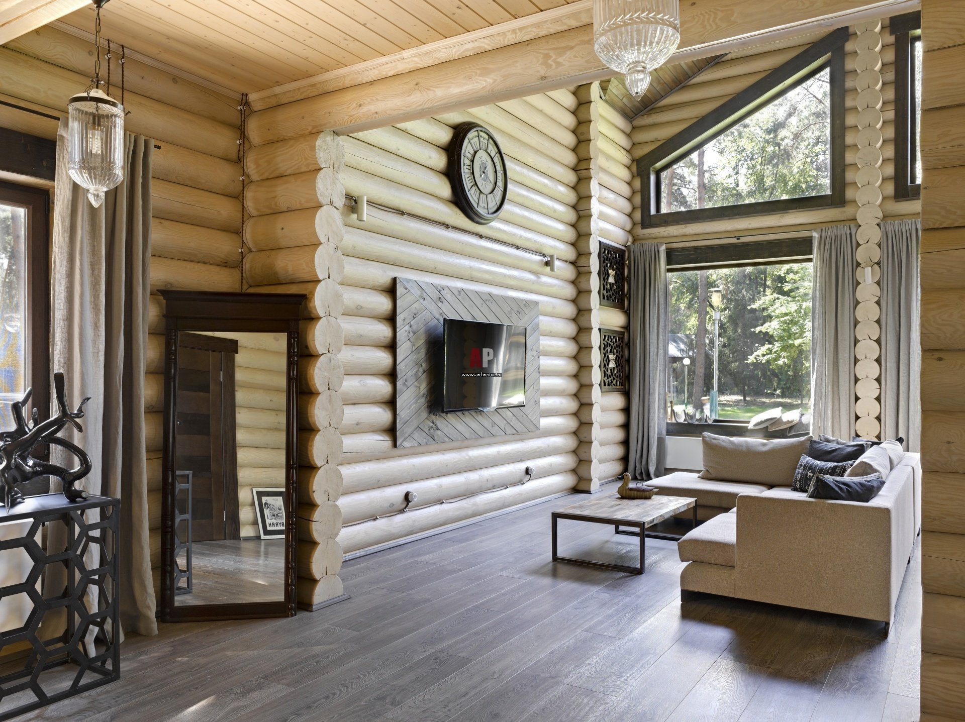 Интерьер дом из оцилиндрованного бревна внутри дома
