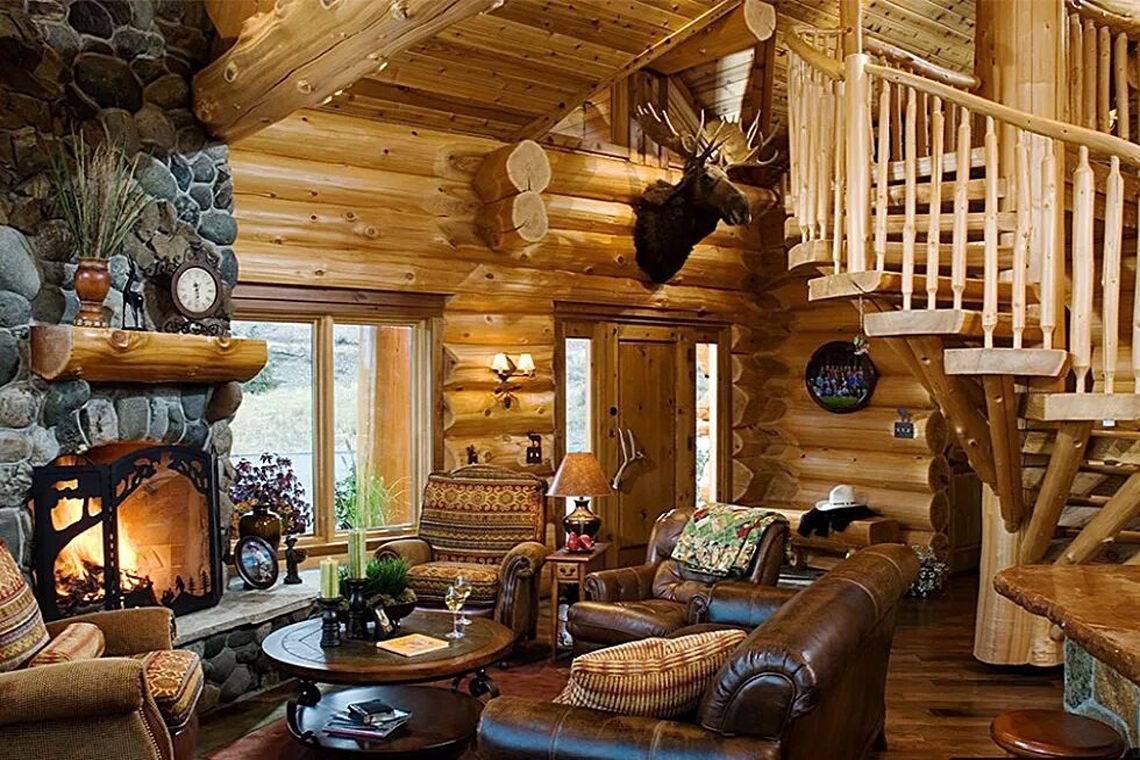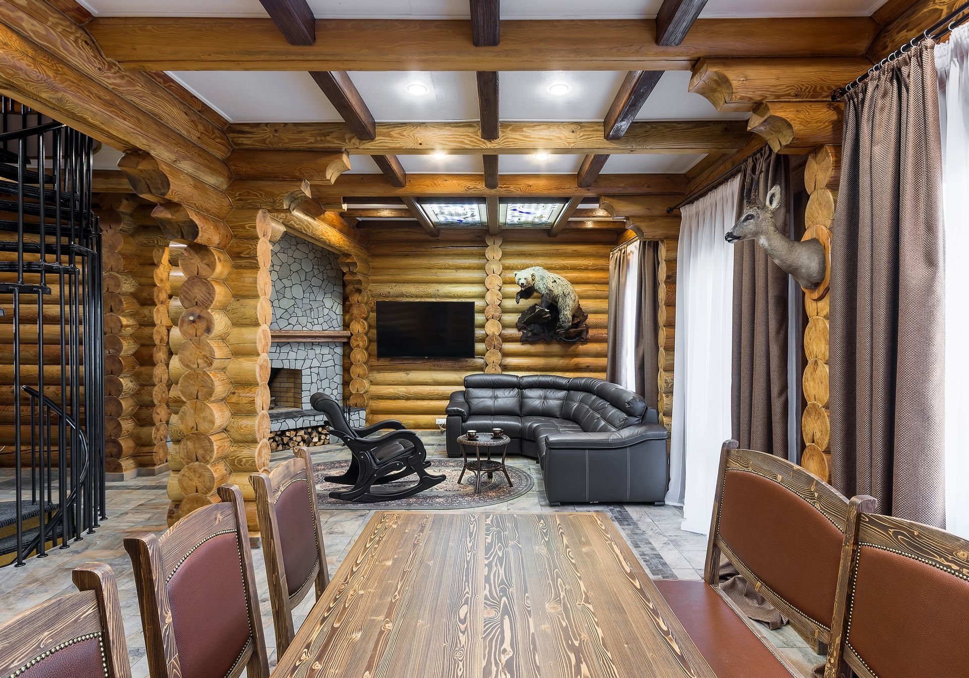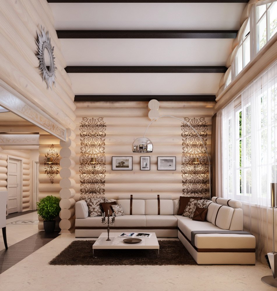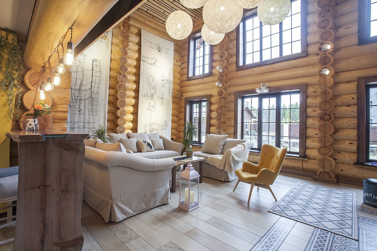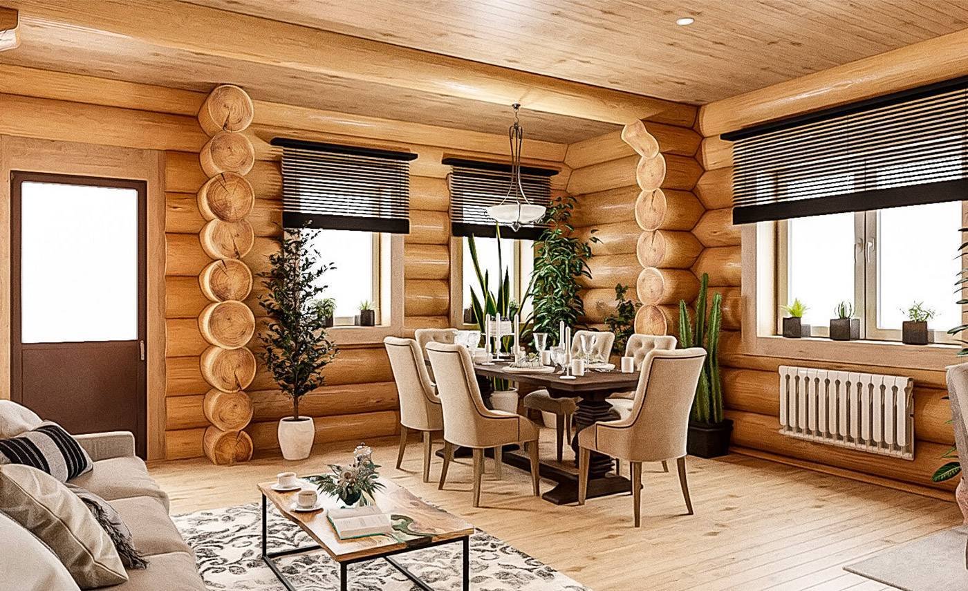 Интерьер дом из оцилиндрованного бревна внутри дома