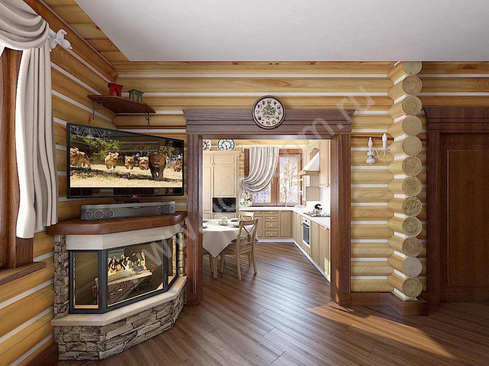Дом из оцилиндрованного бревна интерьер кухня гостиная