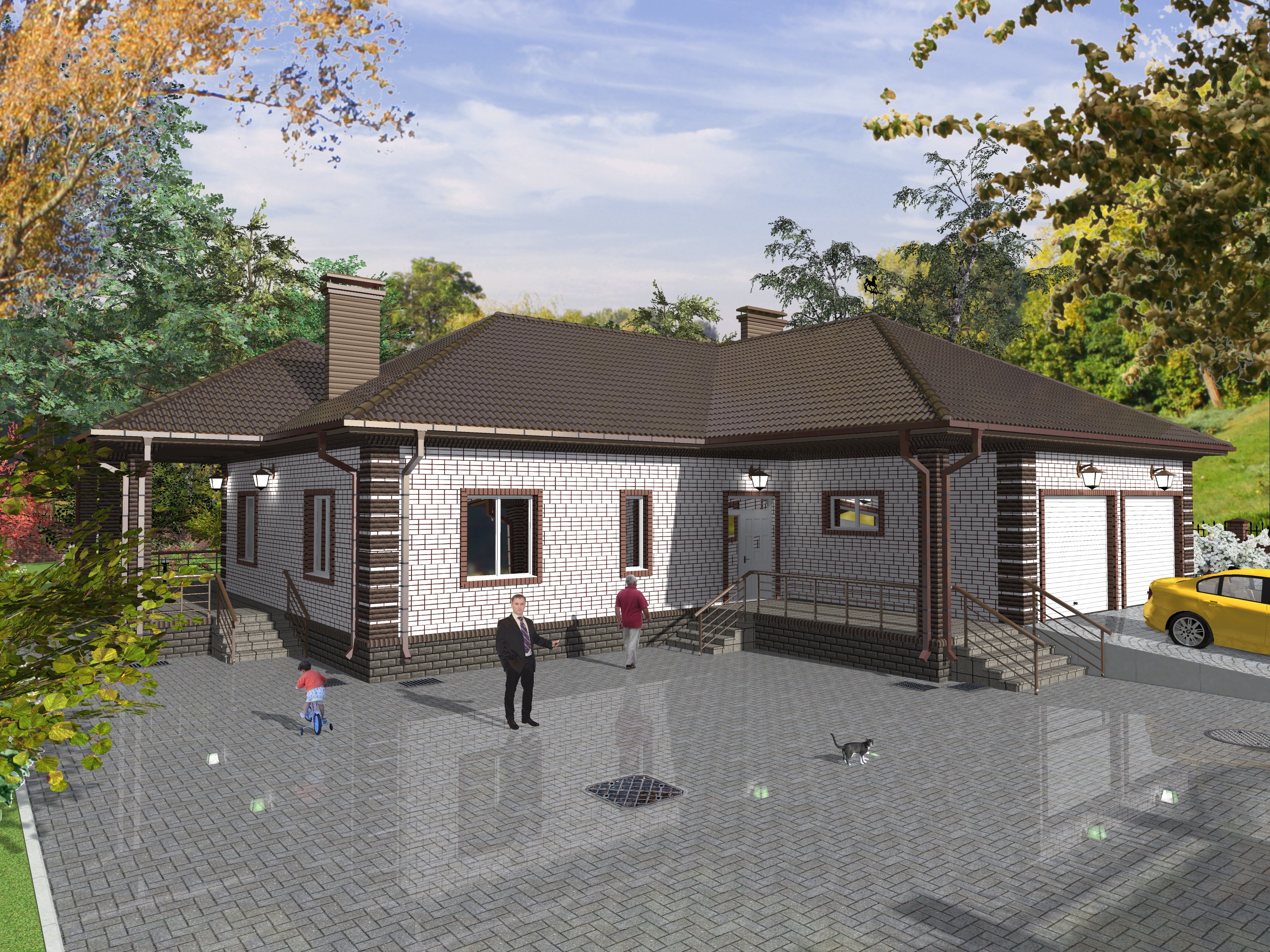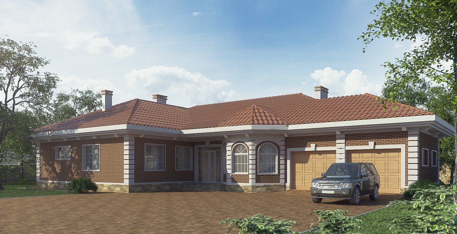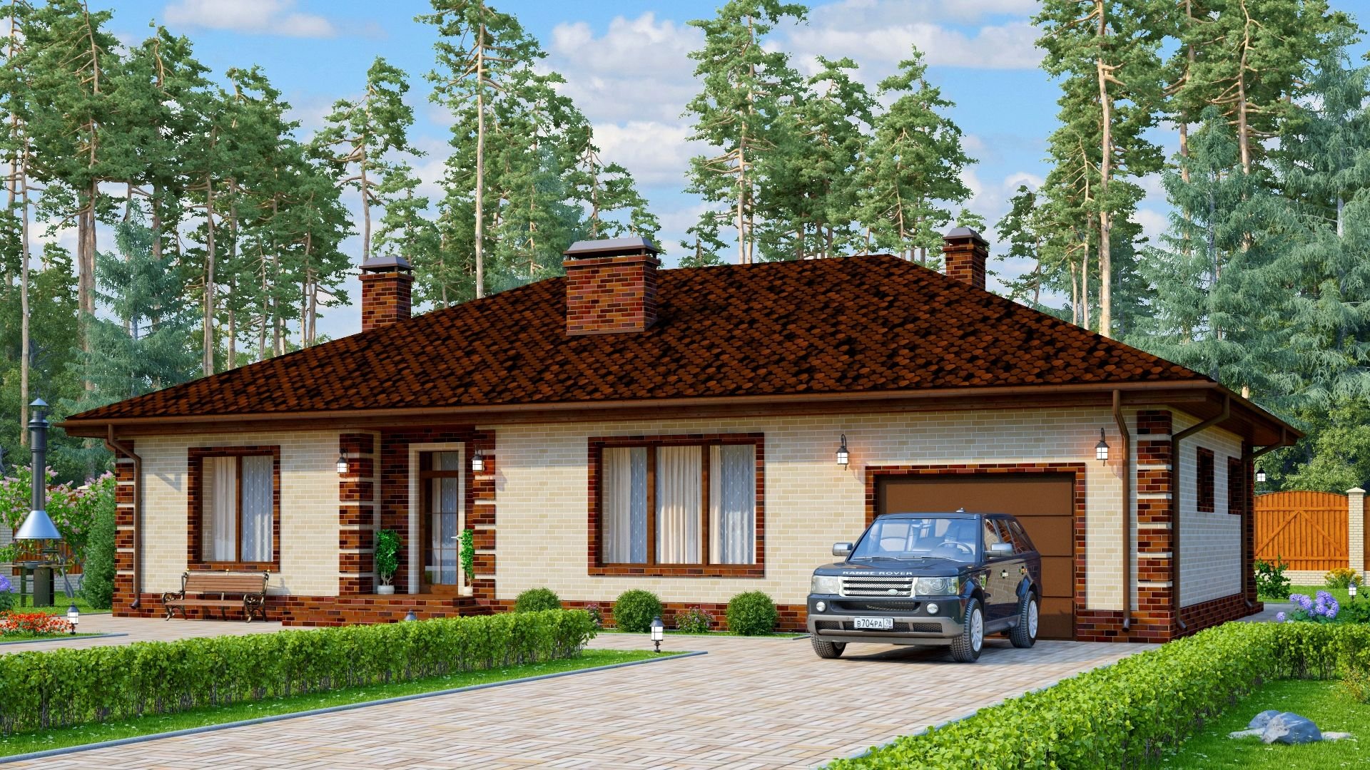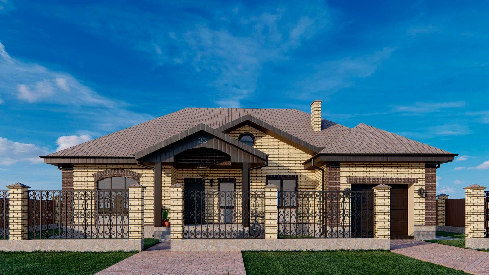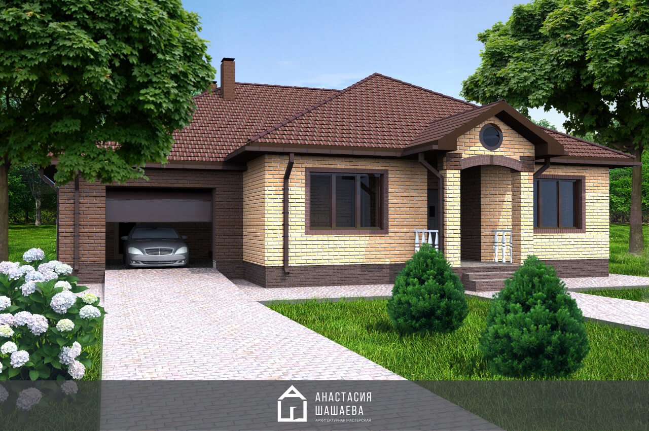 Одноэтажный кирпичный дом с гаражом