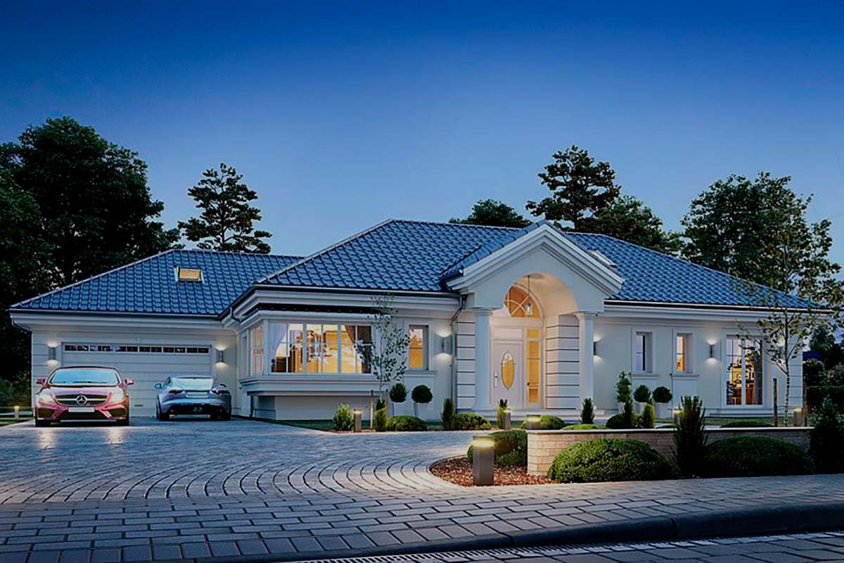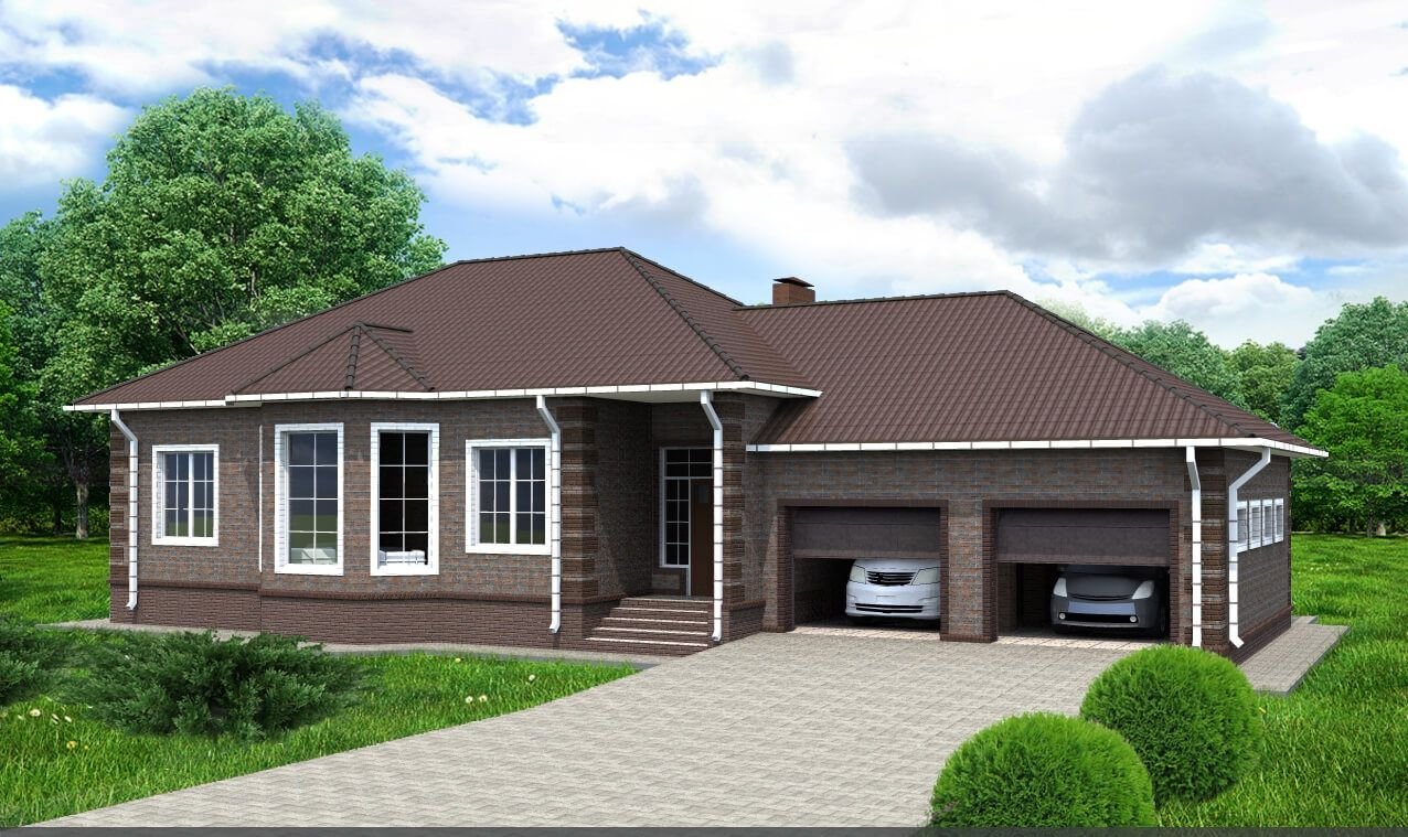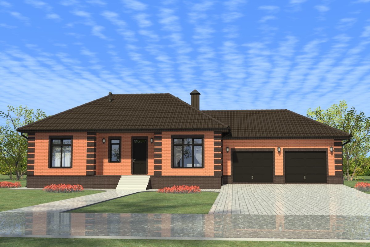 Одноэтажный дом с гаражом на две машины