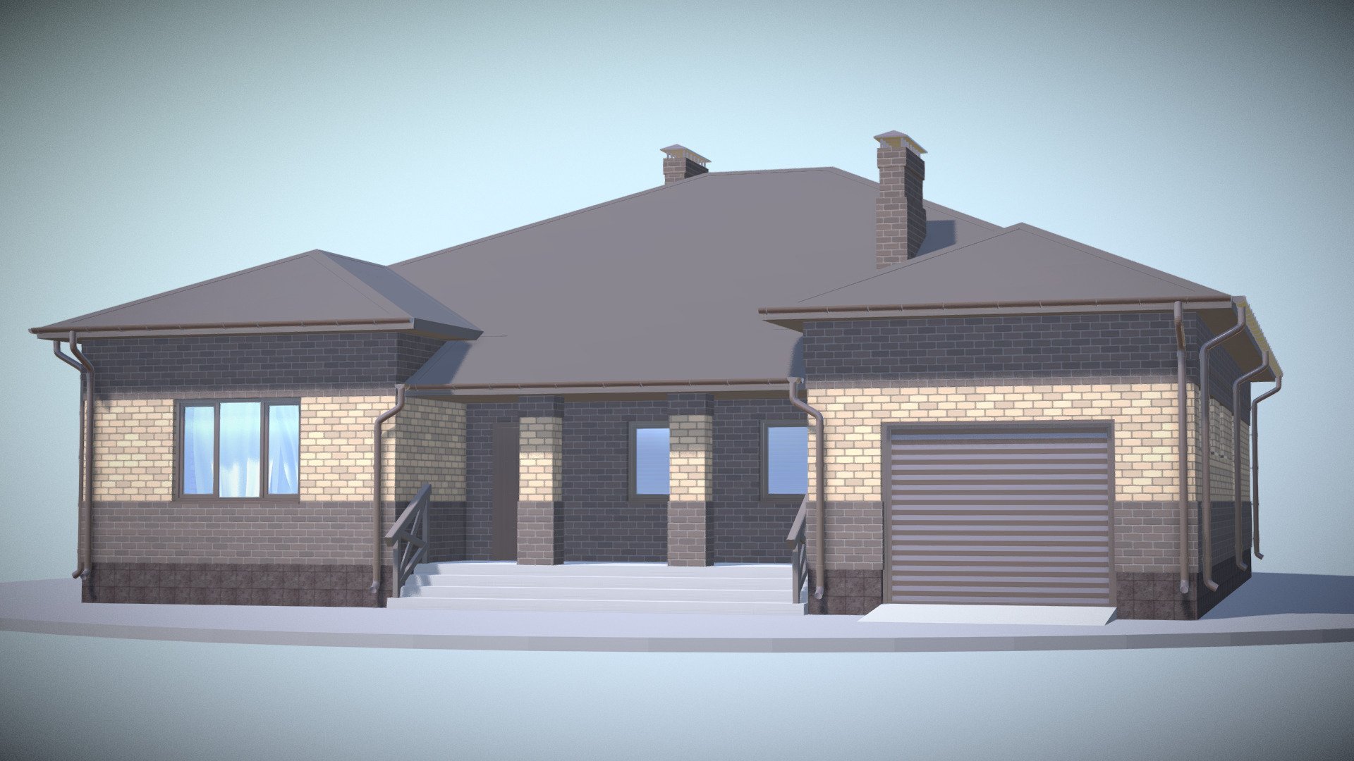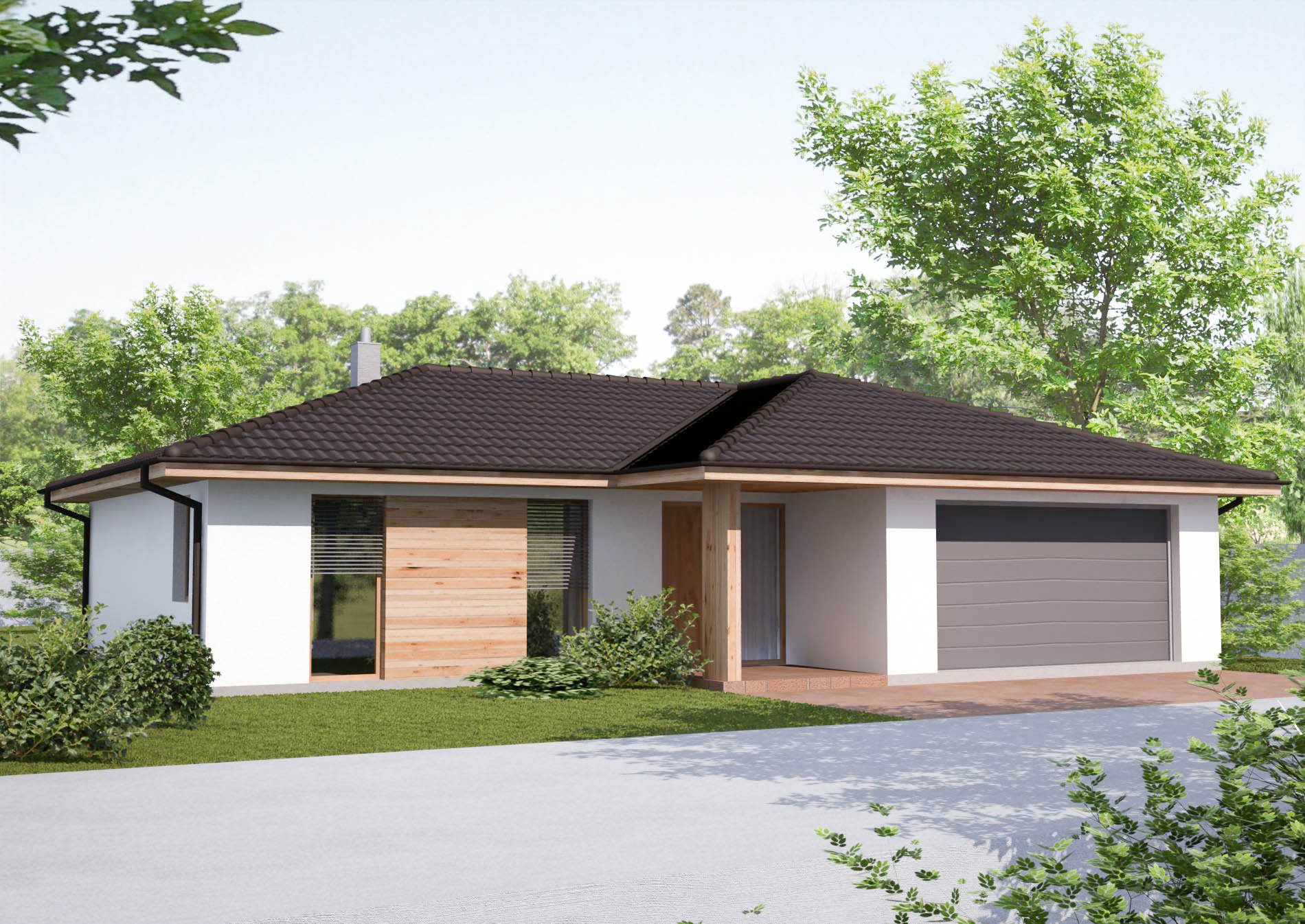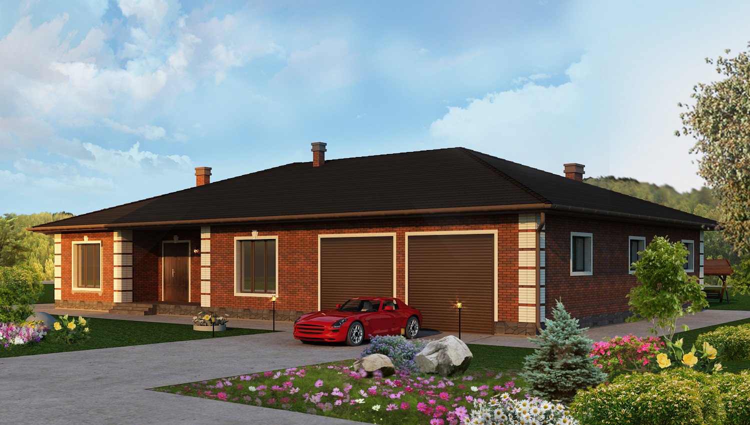 Одноэтажный дом с гаражом на две машины