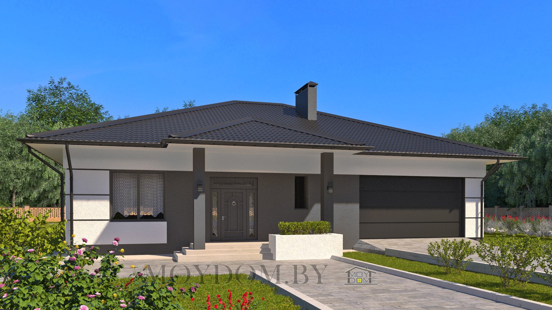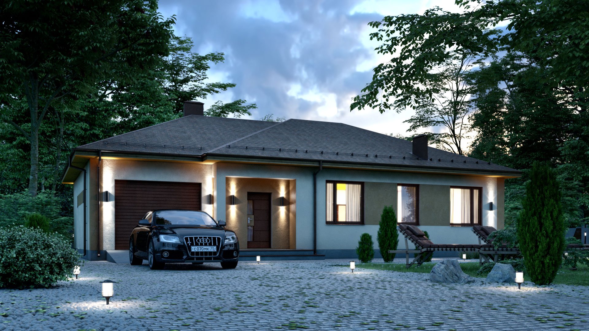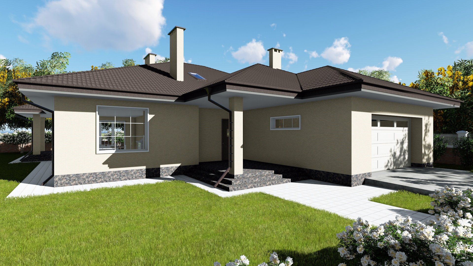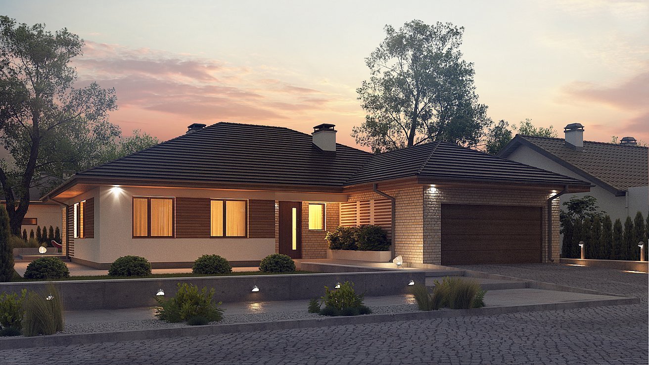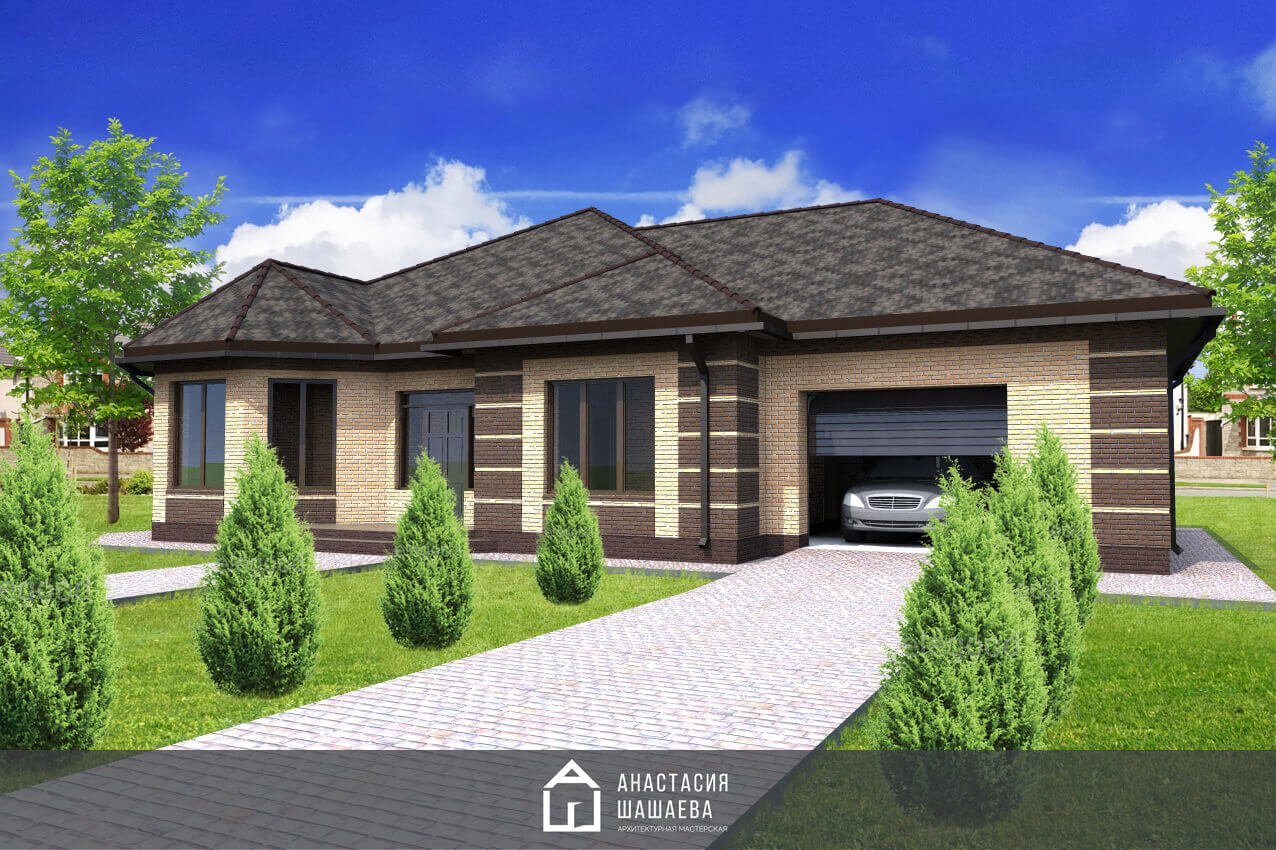 Одноэтажный дом с гаражом
