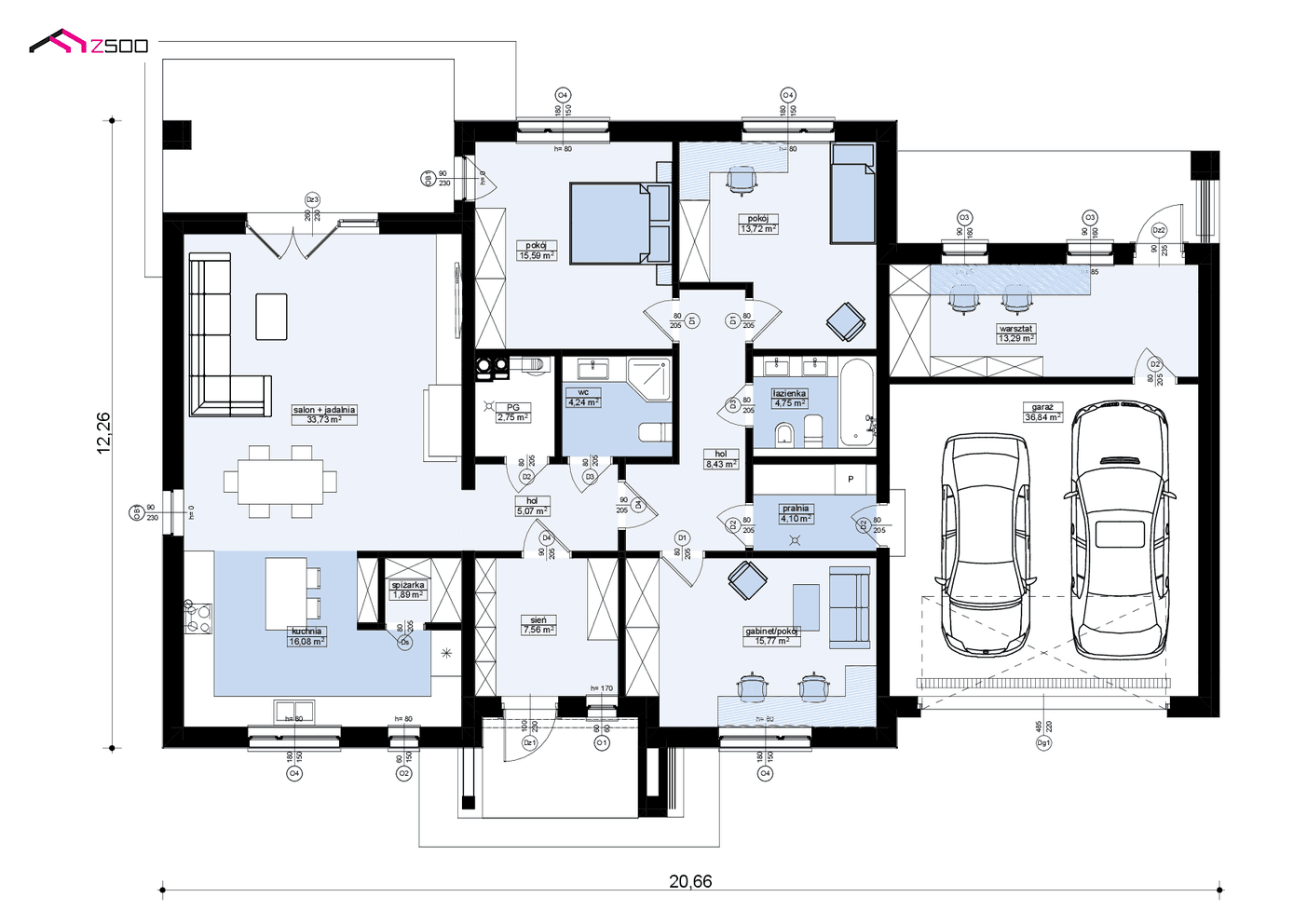 Z500 проекты одноэтажных домов с гаражом на 2 машины