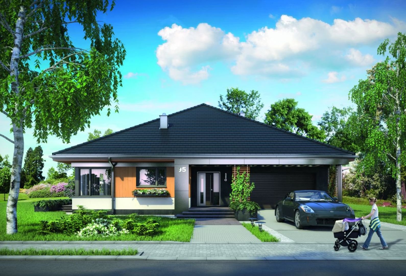 Красивый одноэтажный дом с гаражом