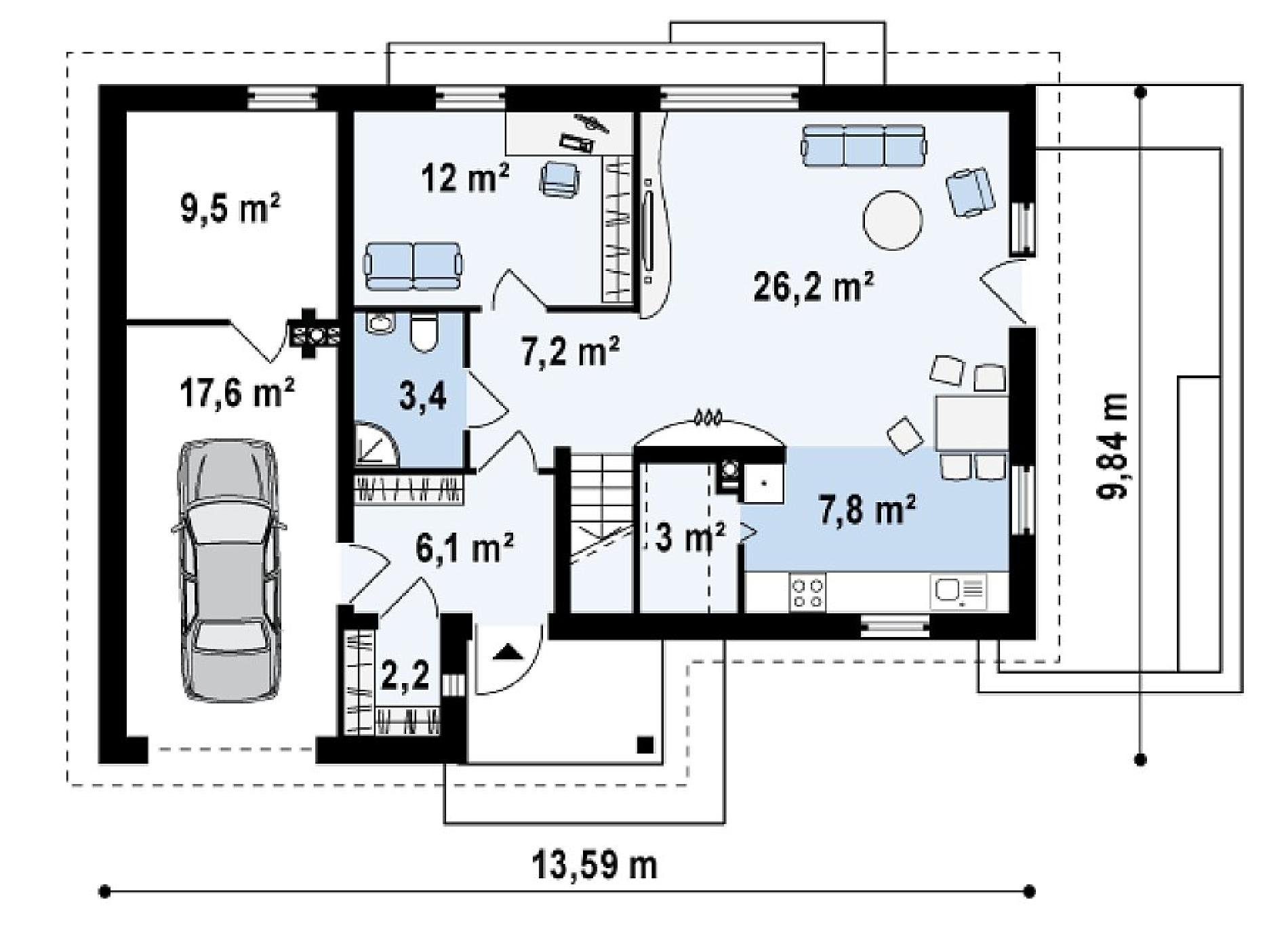 Проект z200 одноэтажный дом с гаражом