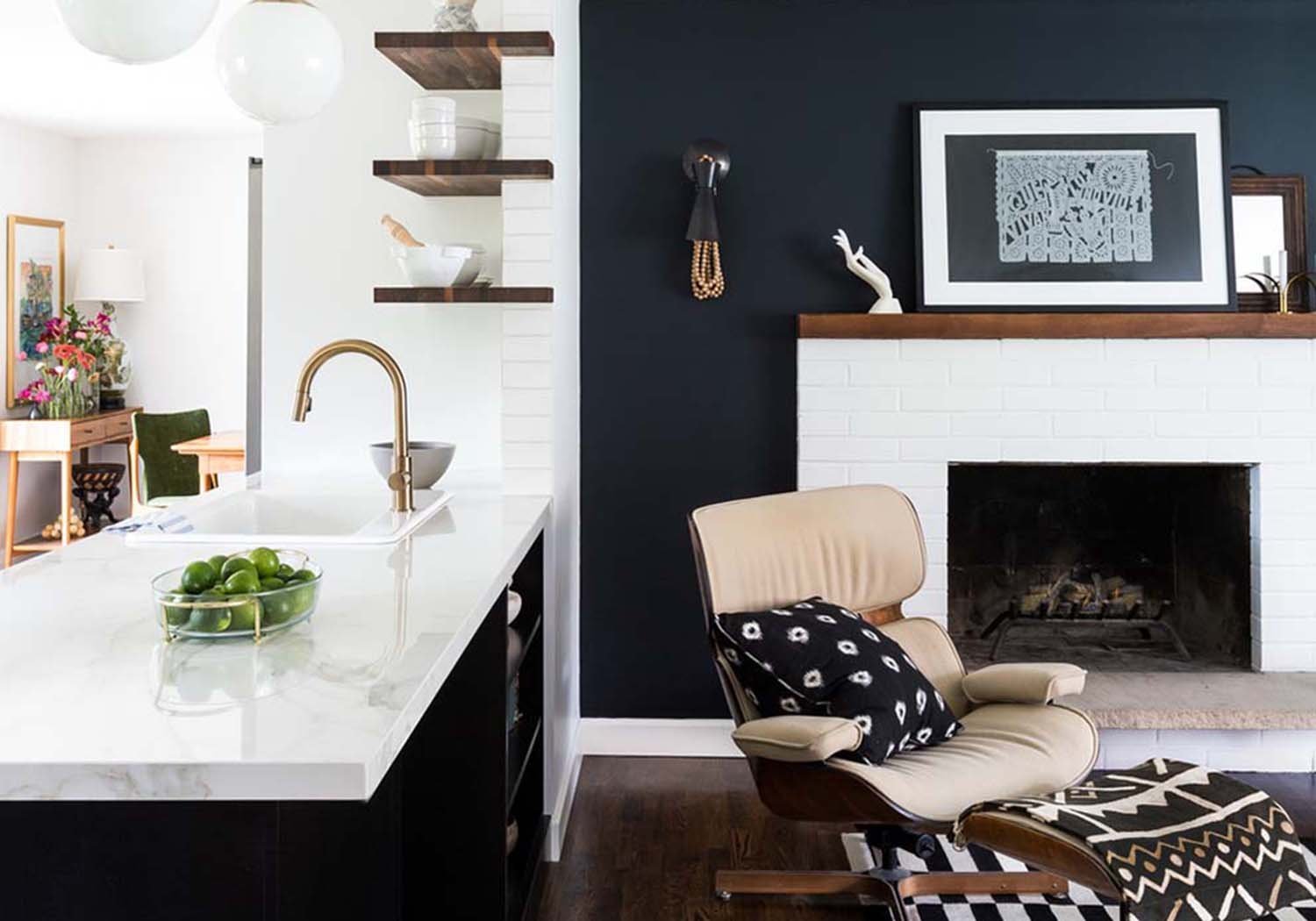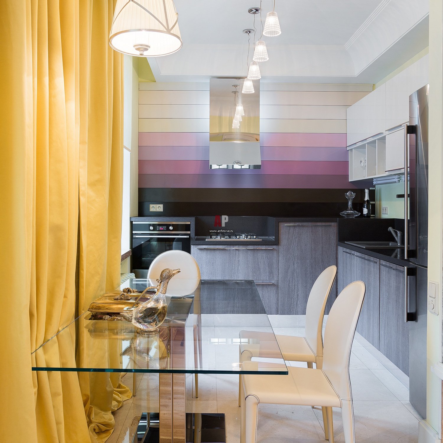 Акцентная на кухне гостиной