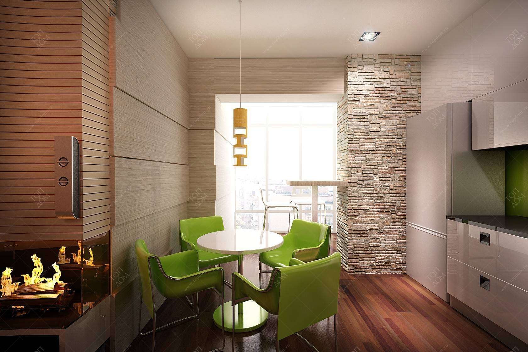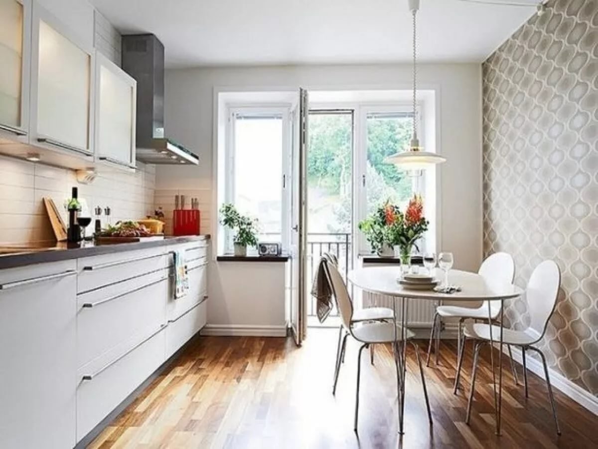 Интерьер кухни с балконом