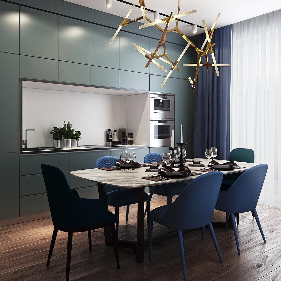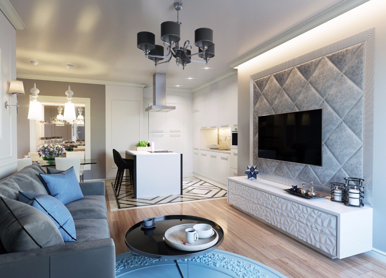 Кухня гостиная в холодных оттенках