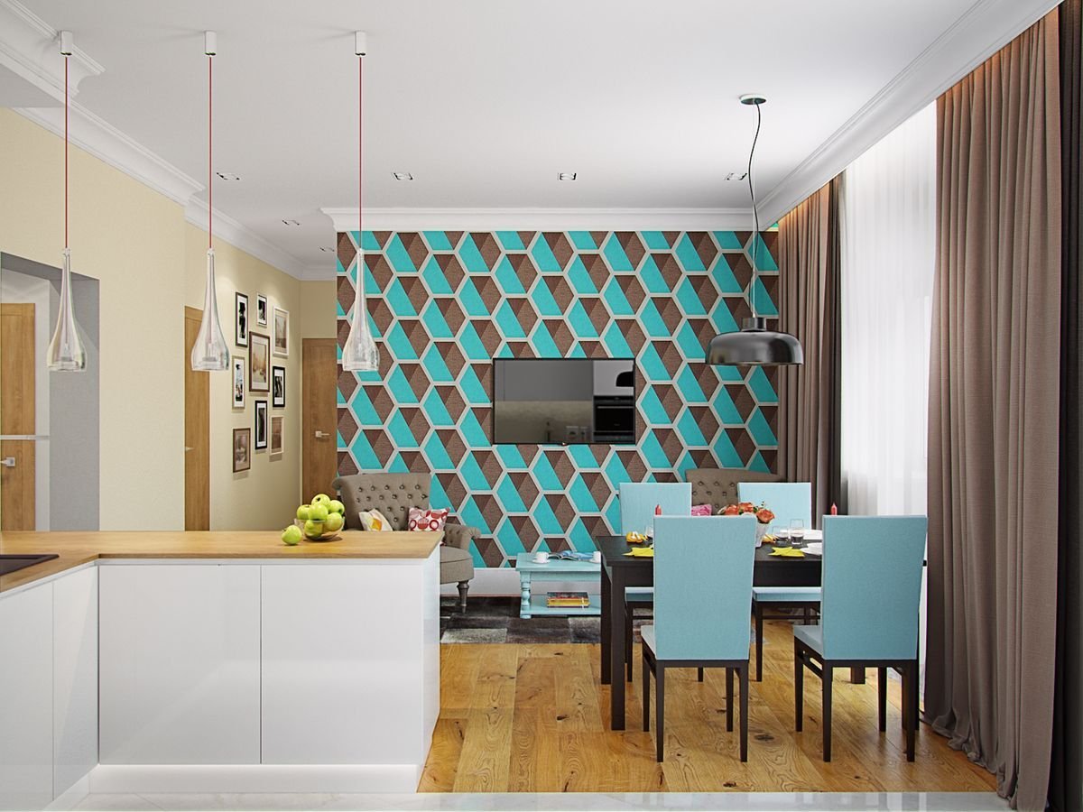 Акцентная стена в кухне гостиной