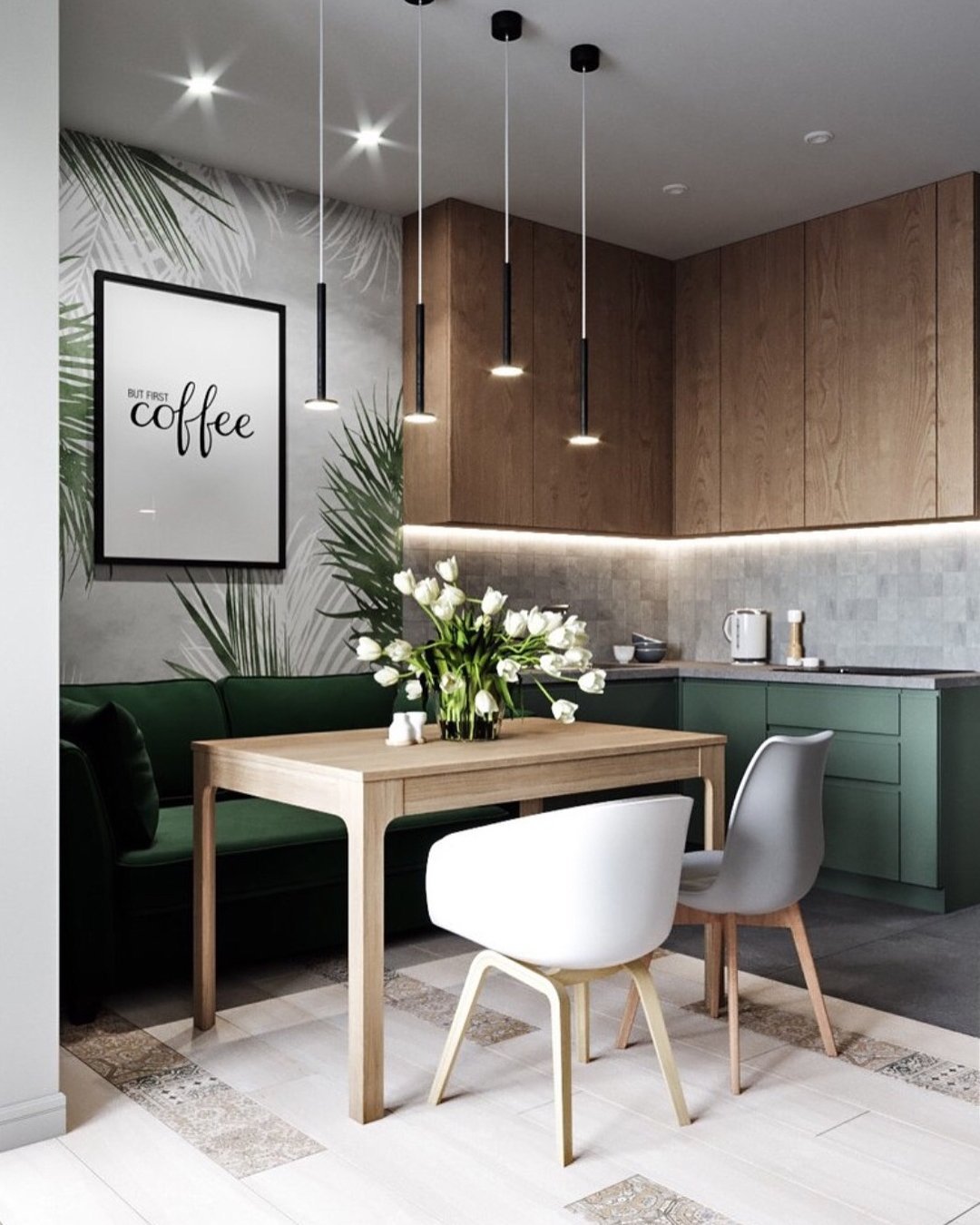 Кухня в стиле Сканди зеленая