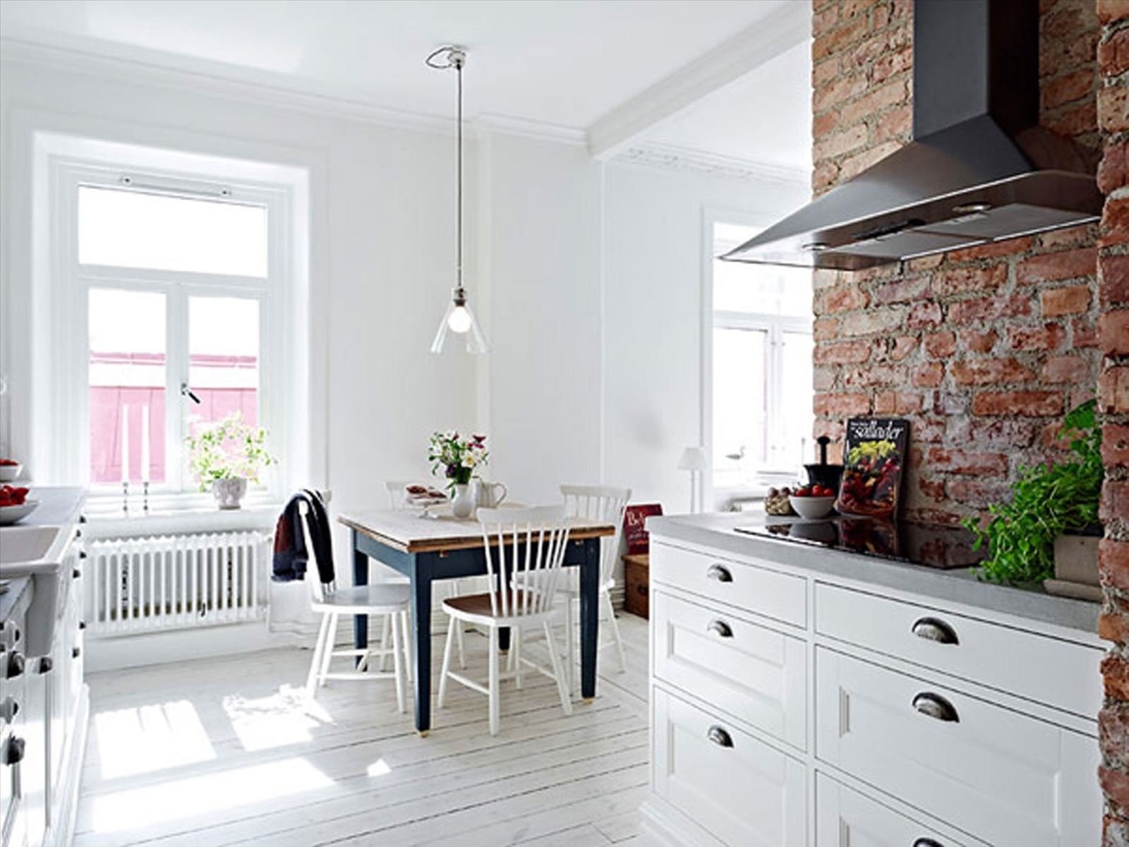 Кухни икеа с кирпичной стеной