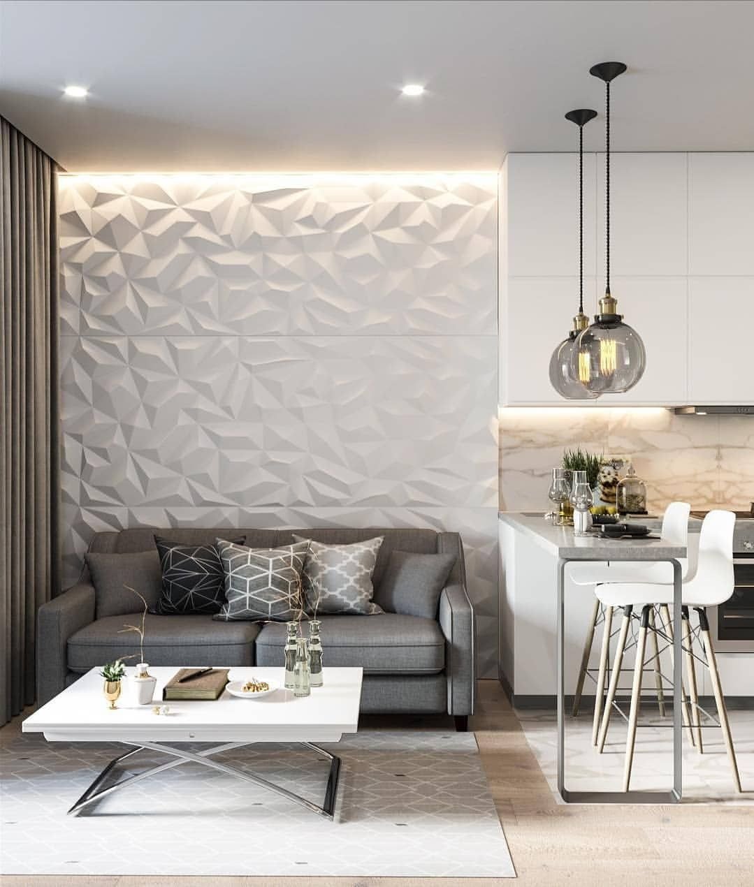 Акцентная стена кухня гостиная в современной