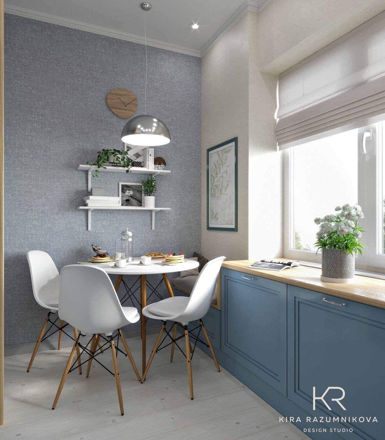 Серо голубые стены на кухне