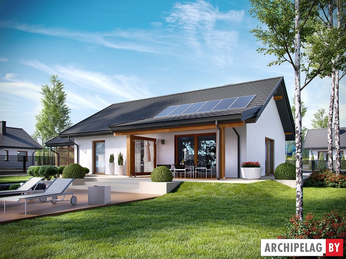 Одноэтажный дом бунгало с террасой